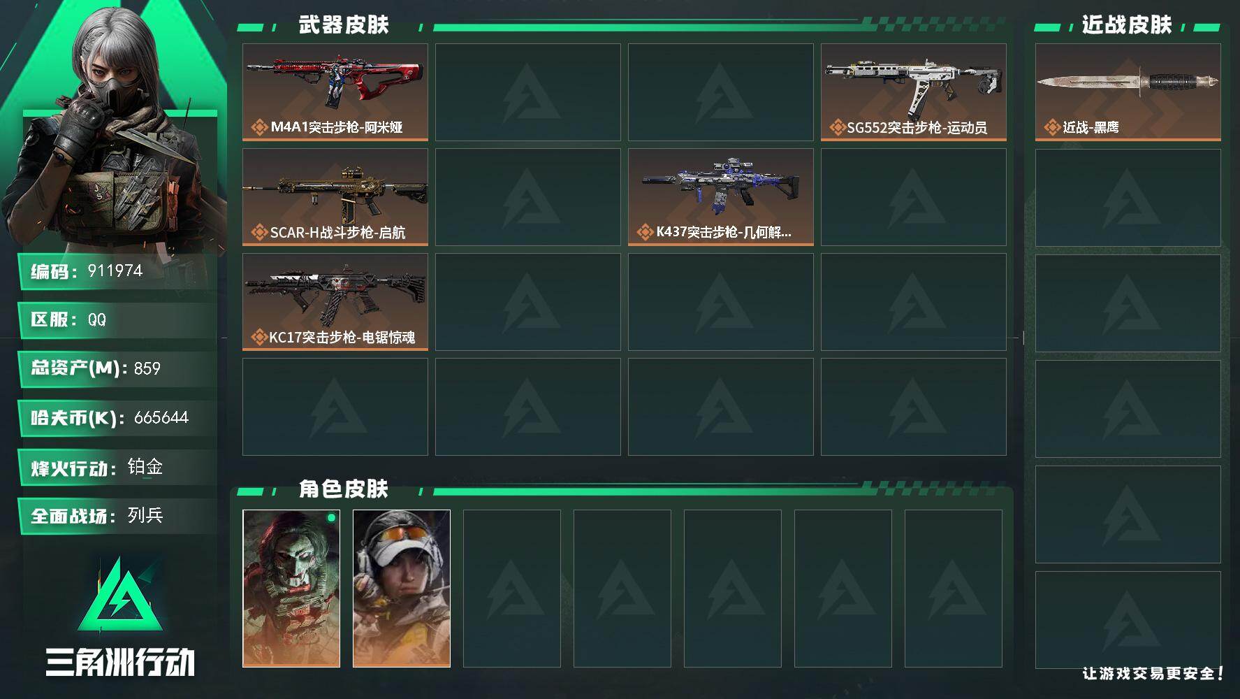 859m总资产-665644k哈夫币-60烽火等级-铂金-28战场等级-列兵