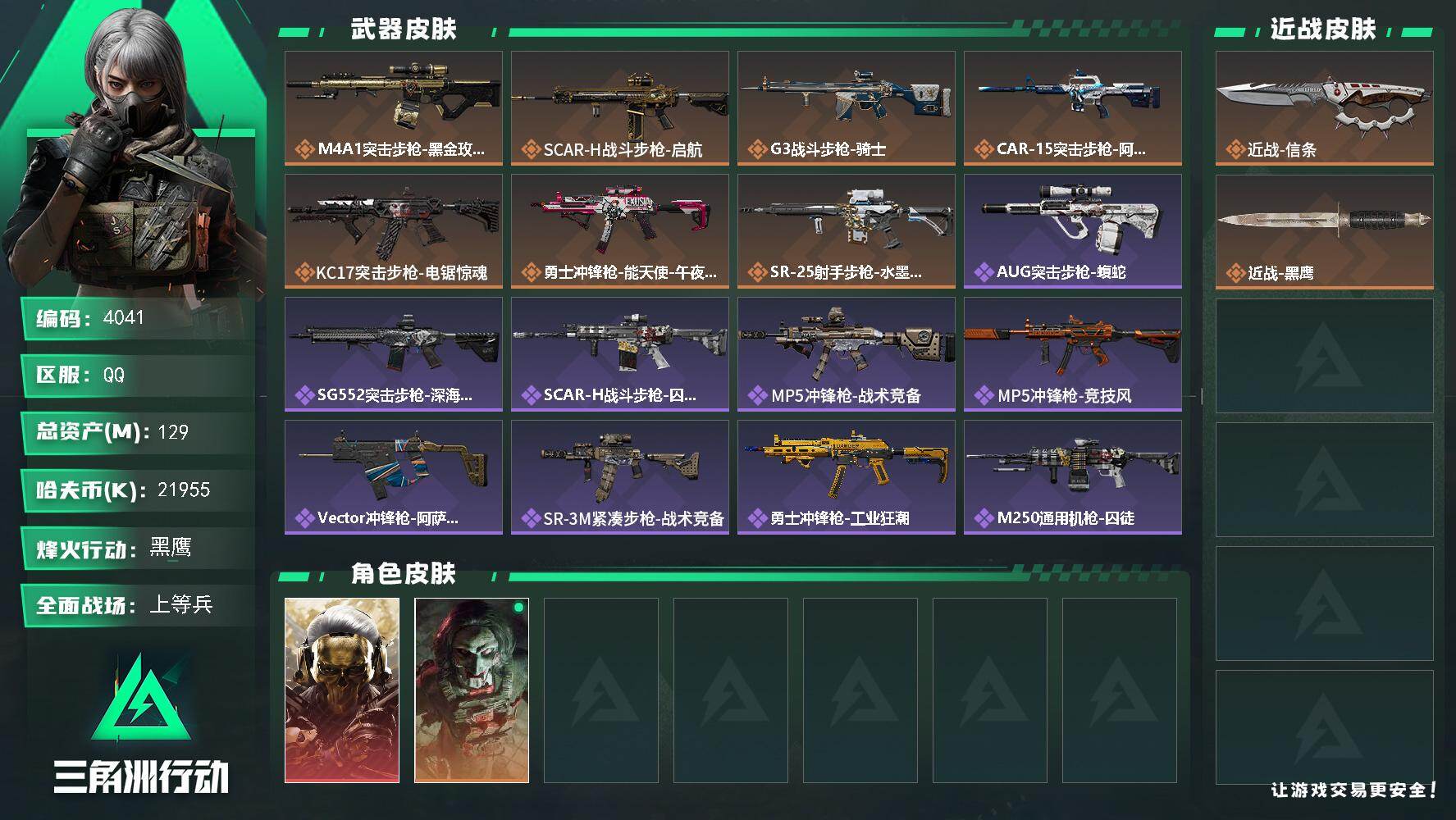 129m总资产-21955k哈伏币-60烽火等级-黑鹰-18战场等级-上等兵