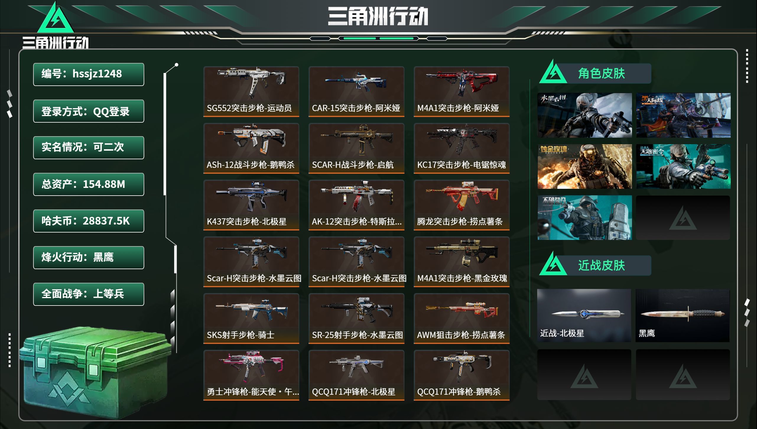 hssjz1248 总资产154.88M,哈夫币 28837.5K,战场等级:29 上等兵,行动等级