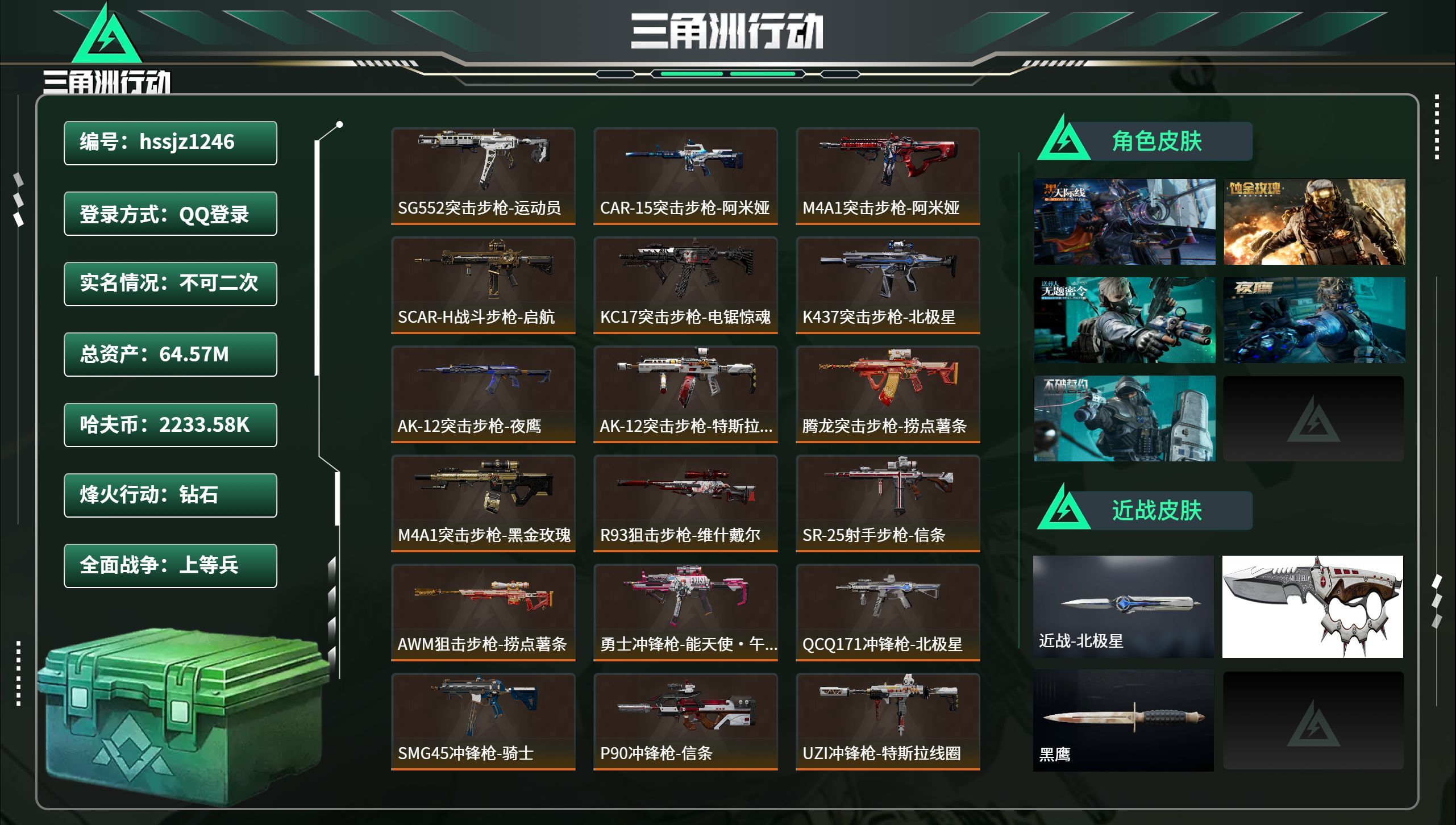 hssjz1246 总资产64.57M,哈夫币 2233.58K,战场等级:40 上等兵,行动等级: