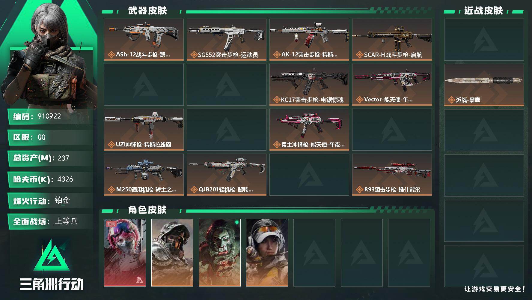 总资产(M):237M/哈夫币(K):4326K/