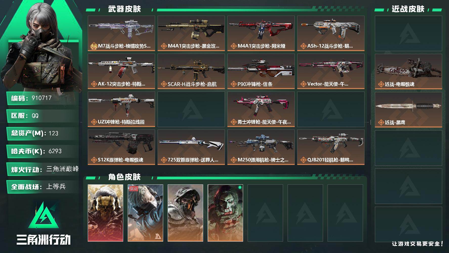 总资产(M):123M/哈夫币(K):6293K/