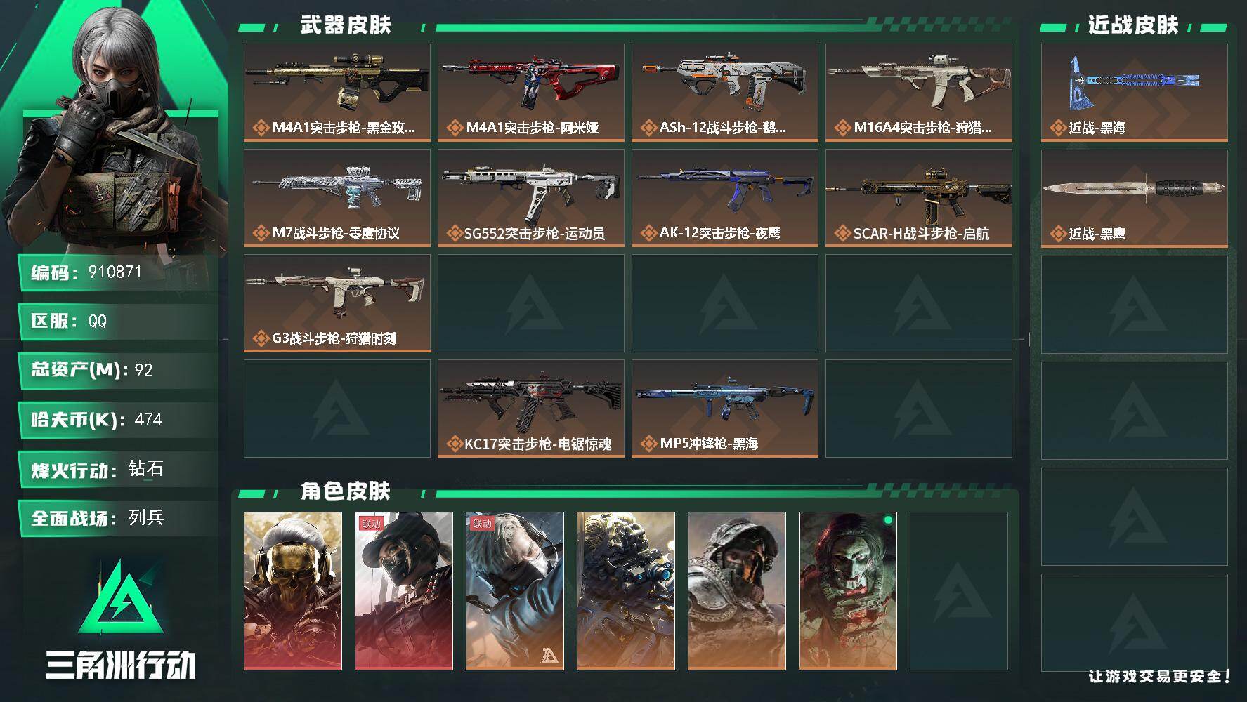 总资产(M):92M/哈夫币(K):474K/哈夫币(K):4