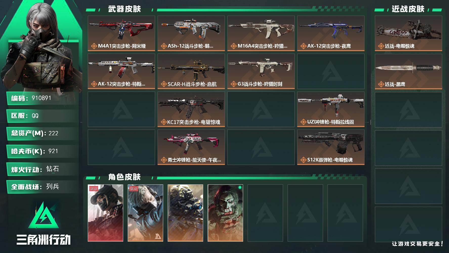 总资产(M):222M/哈夫币(K):921K