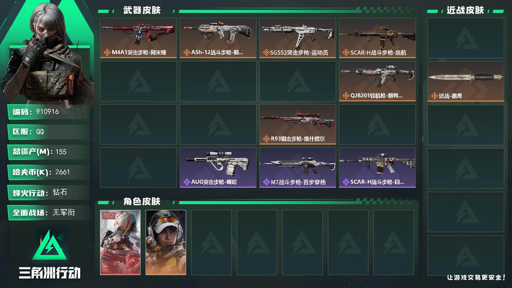 总资产(M):155M/哈夫币(K):2661K/
