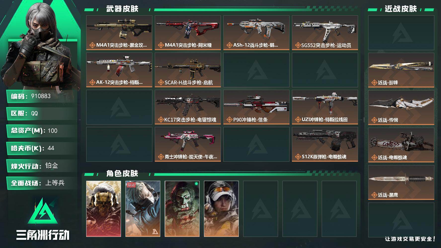 总资产(M):100M/哈夫币(K):44K/
