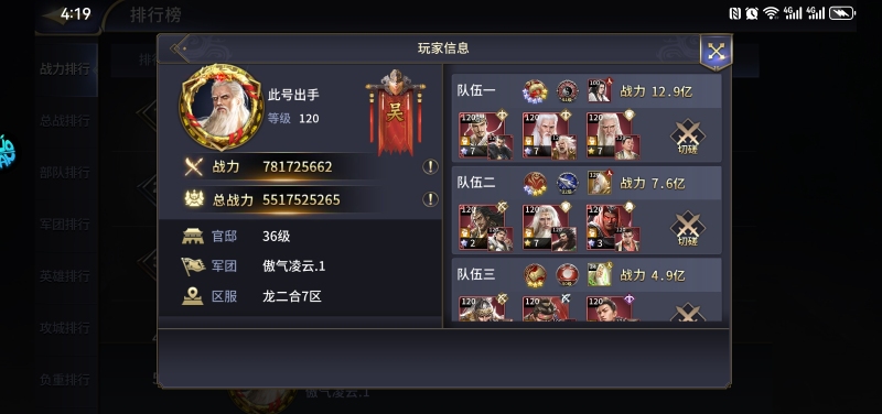 安卓官方 总战力54亿 绝世宝物130 各位朋友欢迎来卖