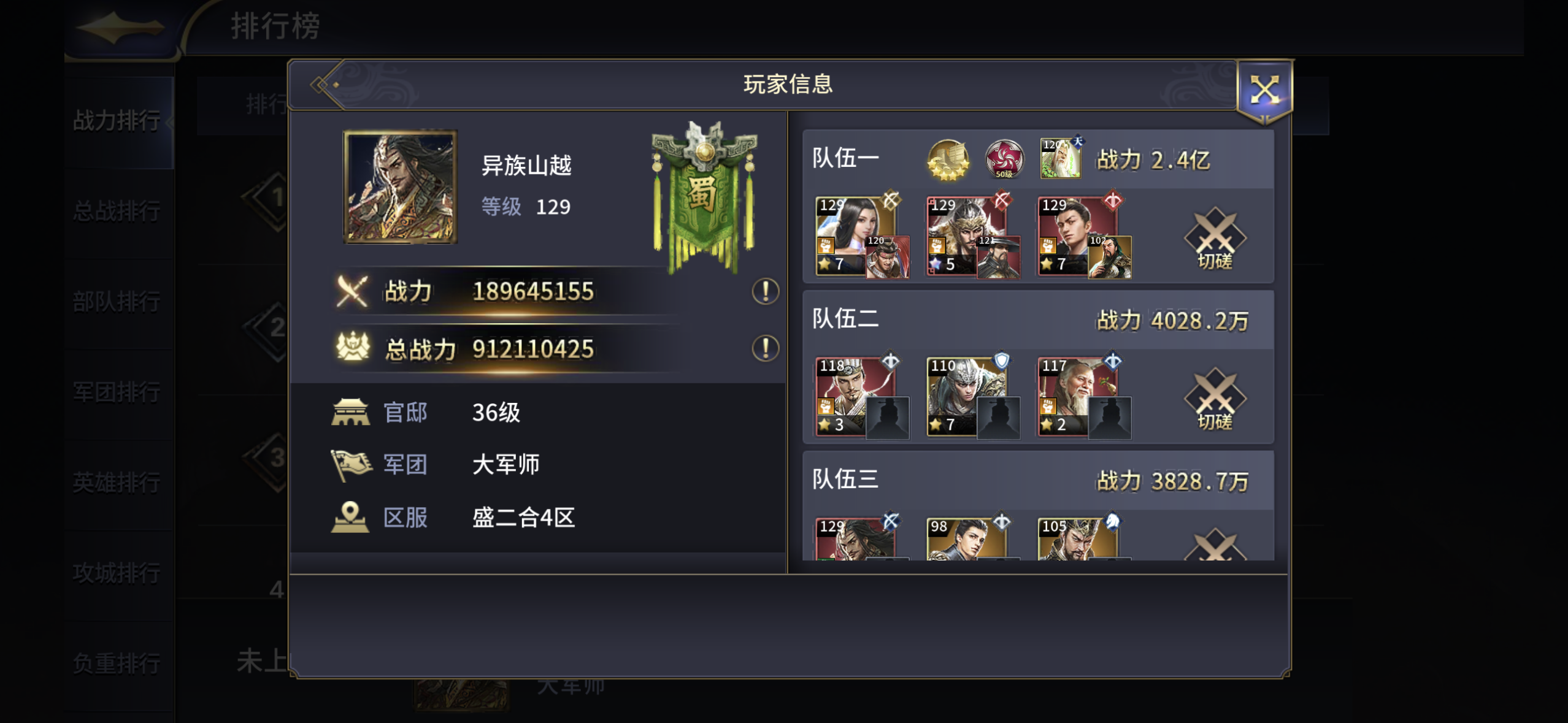 9.4亿战力V18总战力78亿左右
