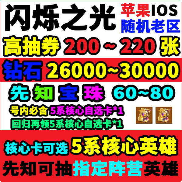 8-20英雄含碎片 15000钻石250高抽25先知抽五星