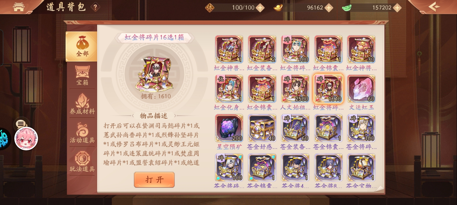 16个虹金4武将双满星人文始祖虹金战法红颜装备化身符