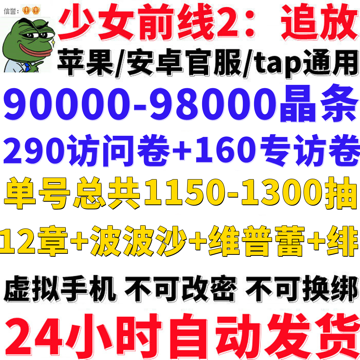 少女前线2:追放【全服通用】单号1200-1500抽,含90000-98000晶条,290访问卷+160专访卷