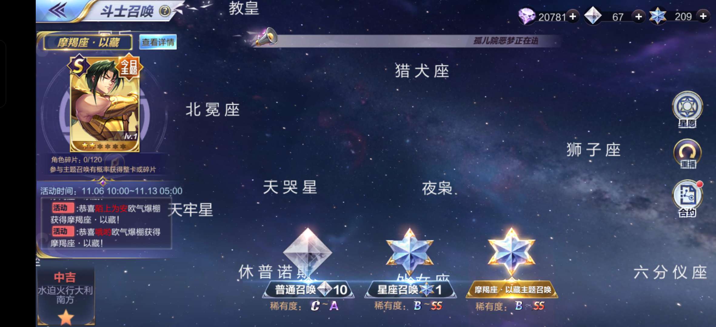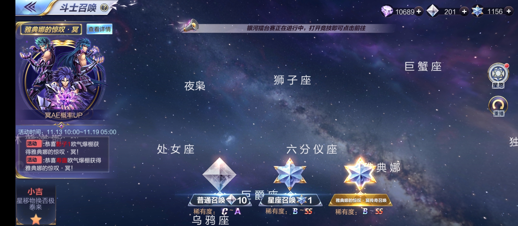 圣斗士星矢(腾讯)【安卓QQ】84区最新区1156高星10689钻石,神修罗神射手神童虎死神睡神雅典娜,雅典娜的惊叹冥传奇召唤中
