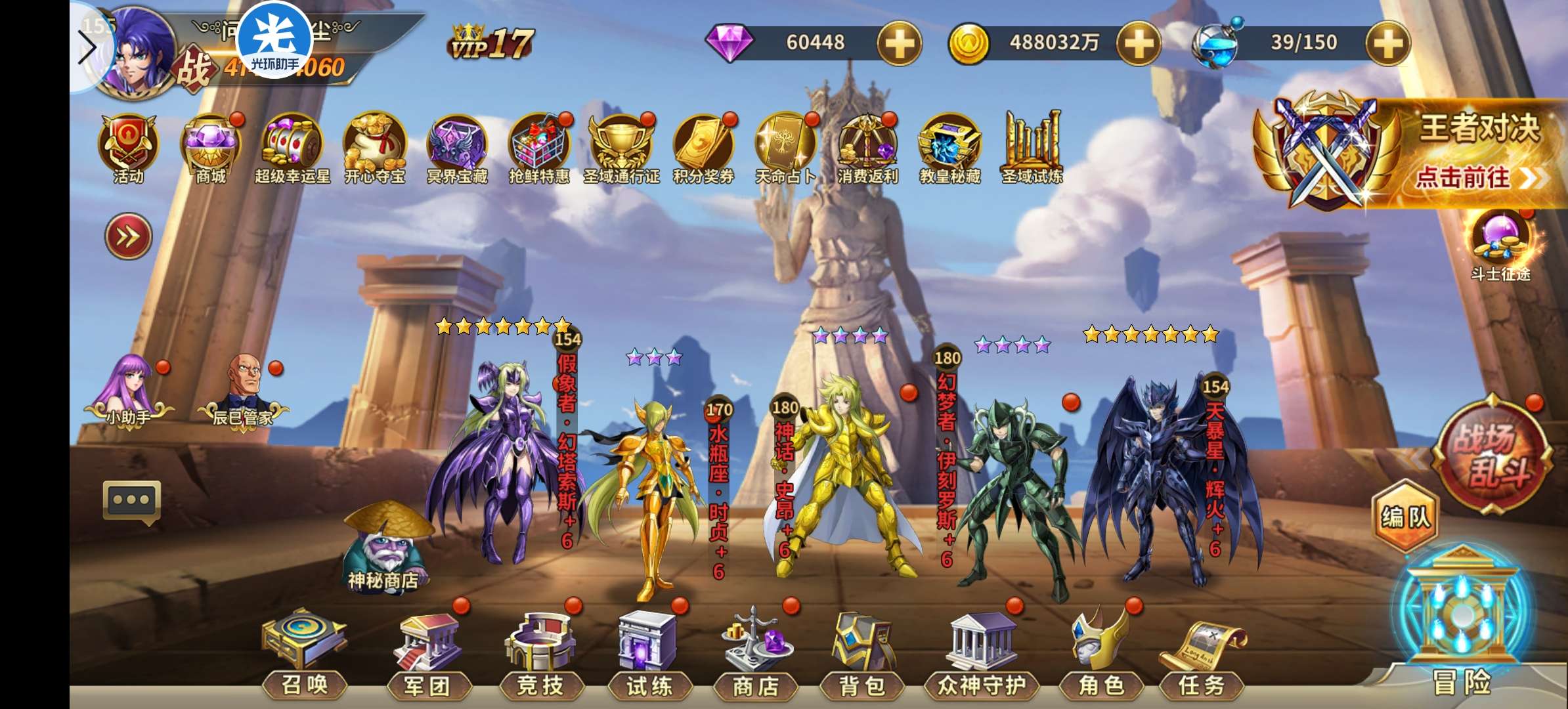 神圣区v18实力号,神话史昂6彩星!钻石17万,当乐充值五折。