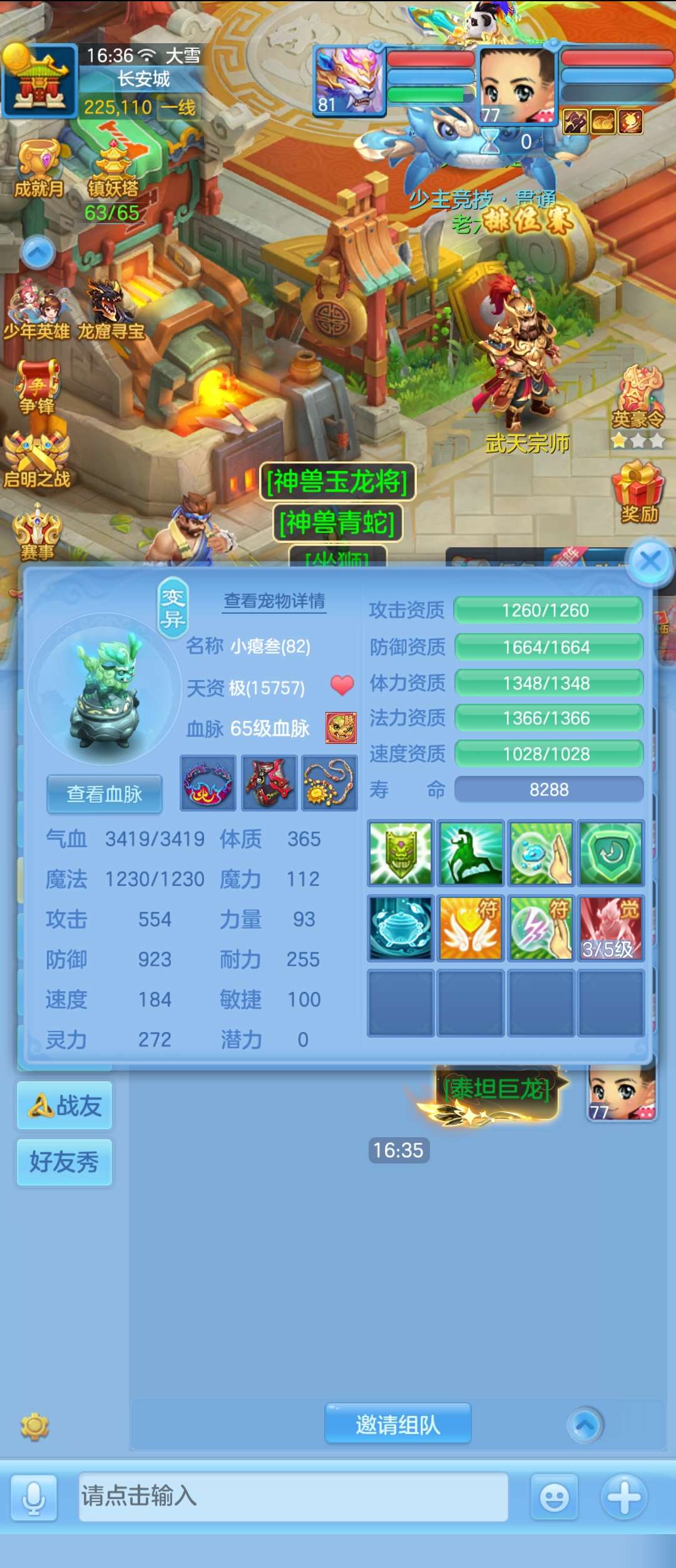 109普陀16个满兽魂,6个专属血脉。13满段,1强化玉龙,1法蛇。上手就能玩2980邮箱,无双重。
