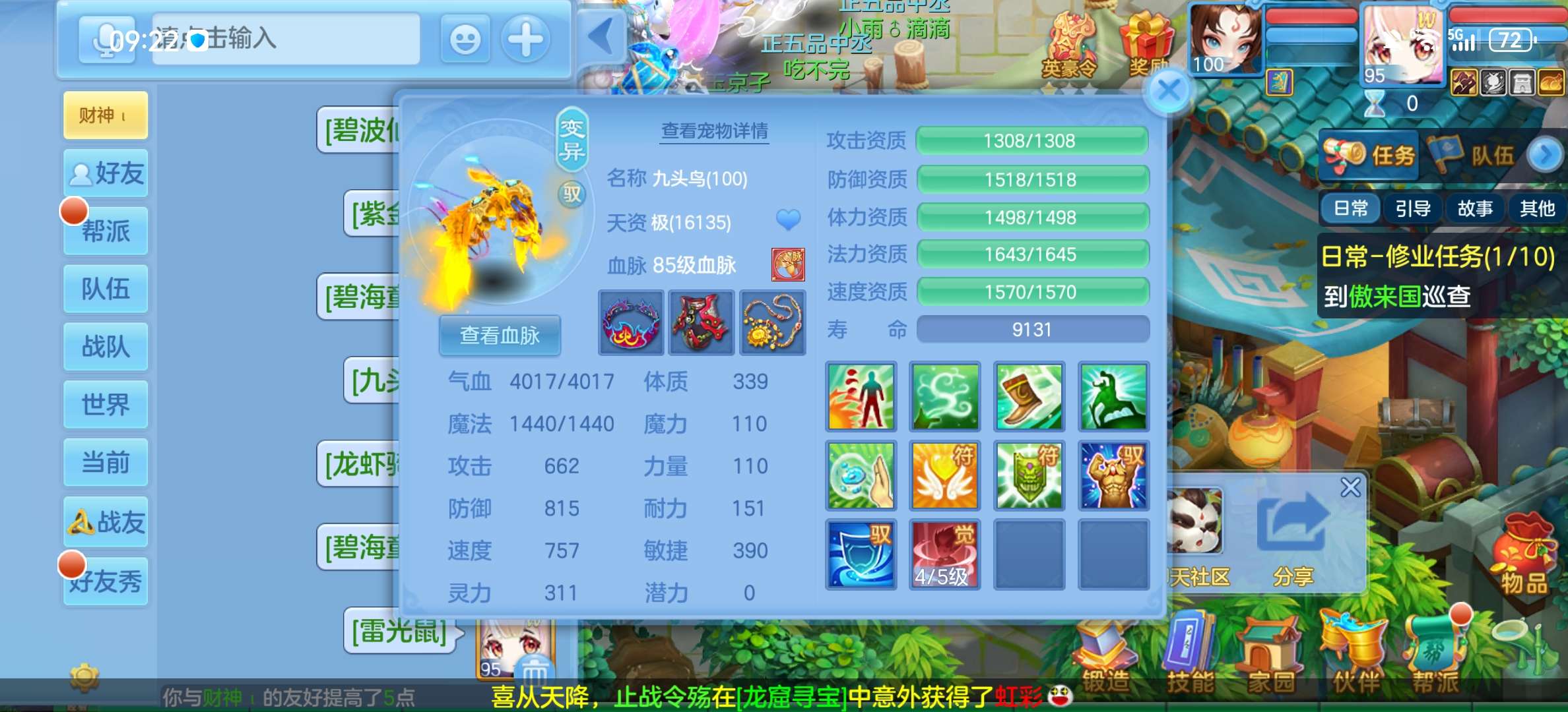 (140龙宫/男)天下无双/邮箱不送/一年换绑★无双重★6件12段,特技装,11个6多特殊5,12红13黄7专属血脉,高级坐骑2染+金拍庄园,仓库还有资源,神兽内丹碎片38,3233成就