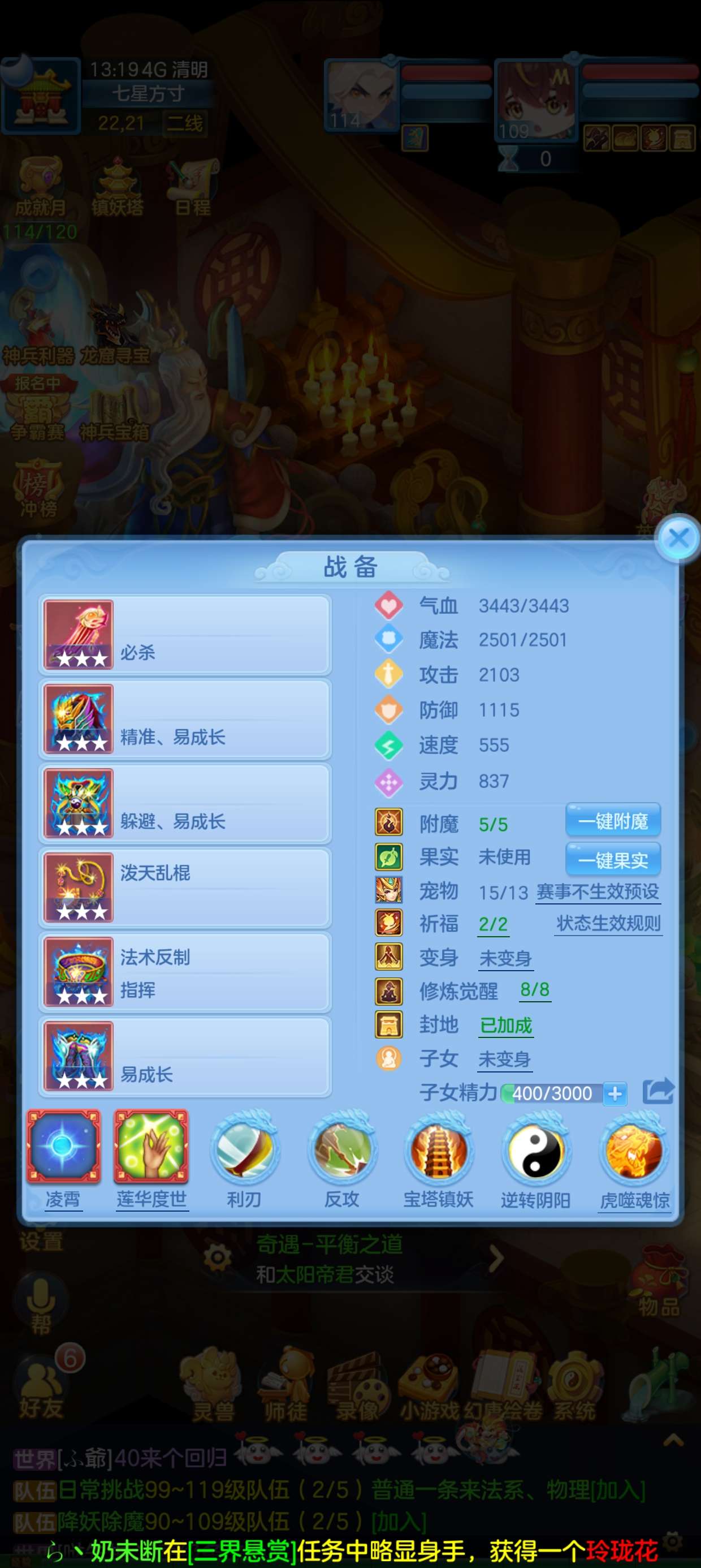 (109龙宫/男)今年勇/一年换绑★无双重★2件13段1件12段2件11段1件10段,易成长,双内丹神兽+3个6多特殊5,2593成就