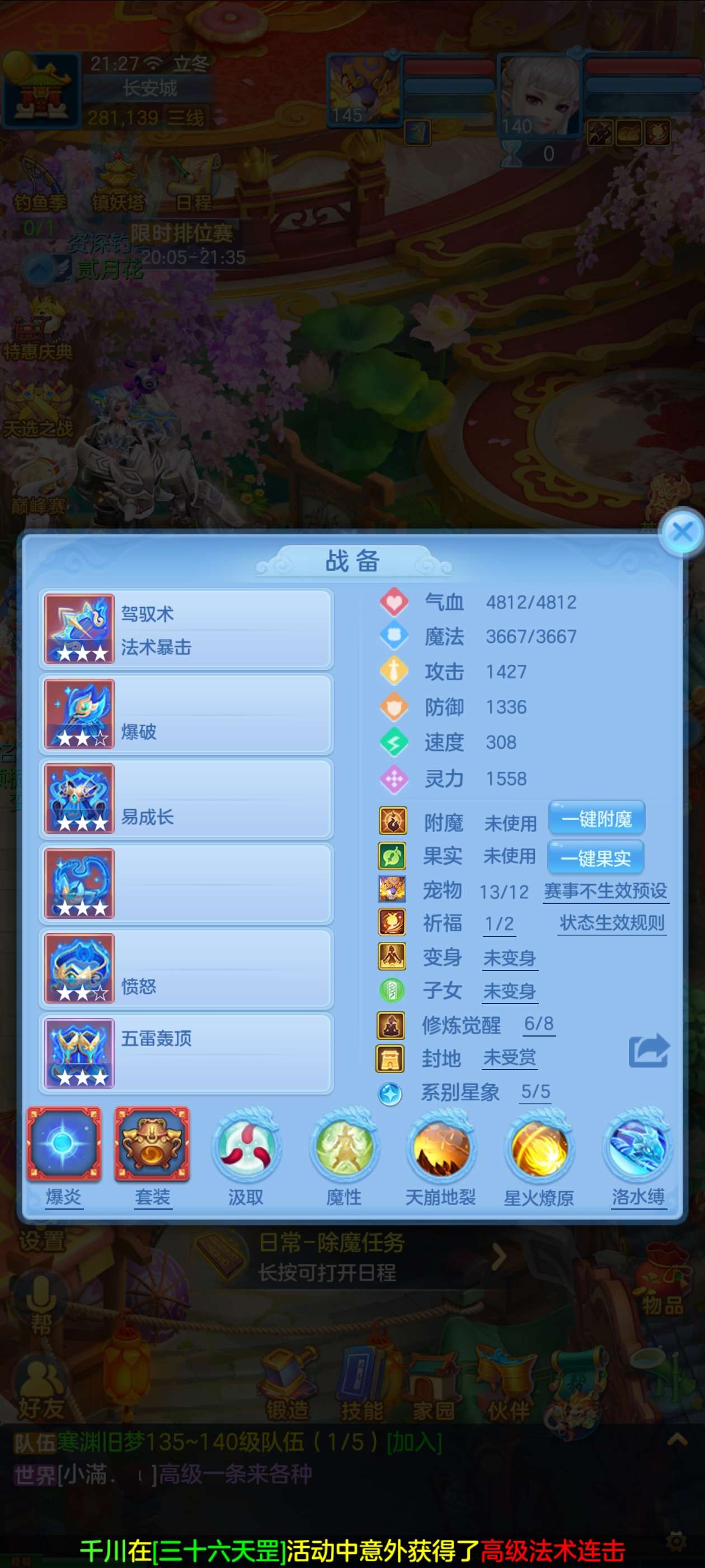 幻唐志:逍遥外传(神武4)【安卓官方】(一年换绑)(140天宫)天下无双/有双重/1件12 5件11-高级坐骑 4个6技能 4专属血脉 10红7黄血脉