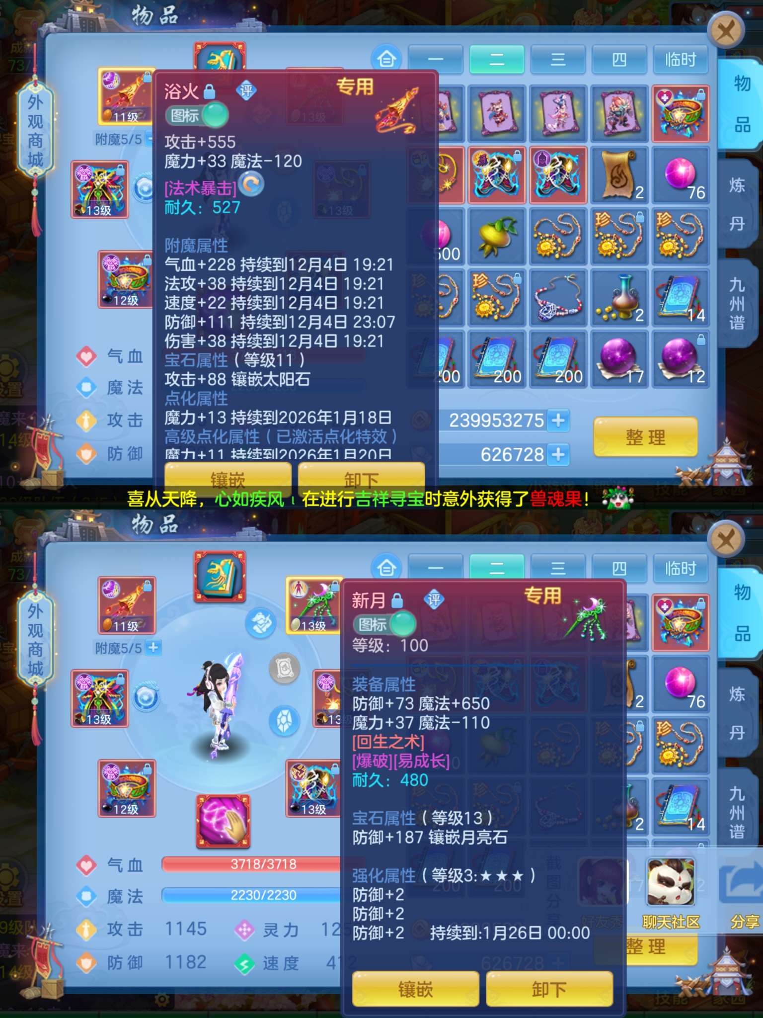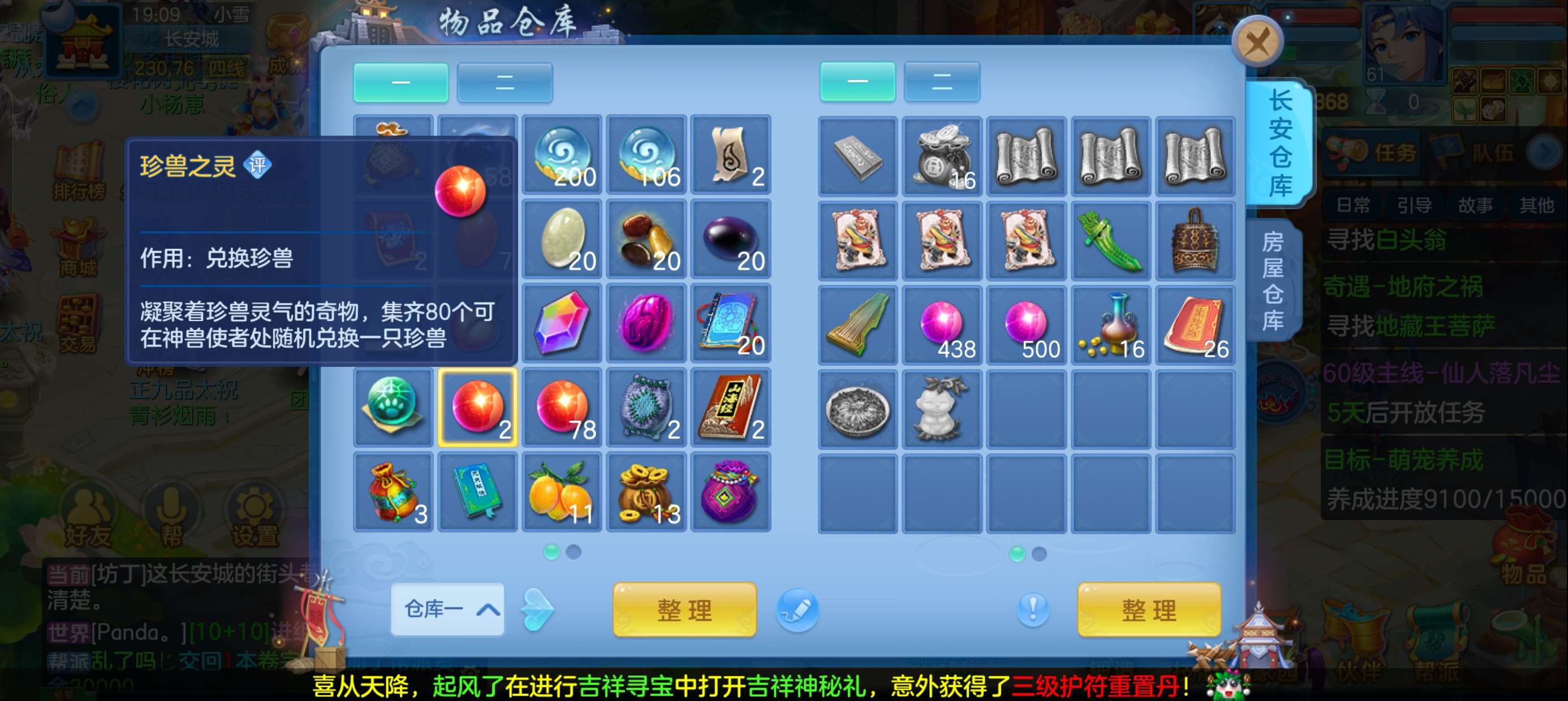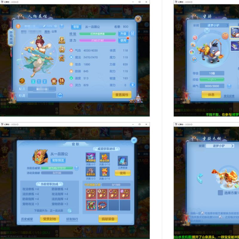 (109天策/女)二〇二〇/半年换绑★无双重★3件12段3件11段,易成长特技,内丹神兽蛇+10个6多特殊5(4满魂兽),高级坐骑,2880成就