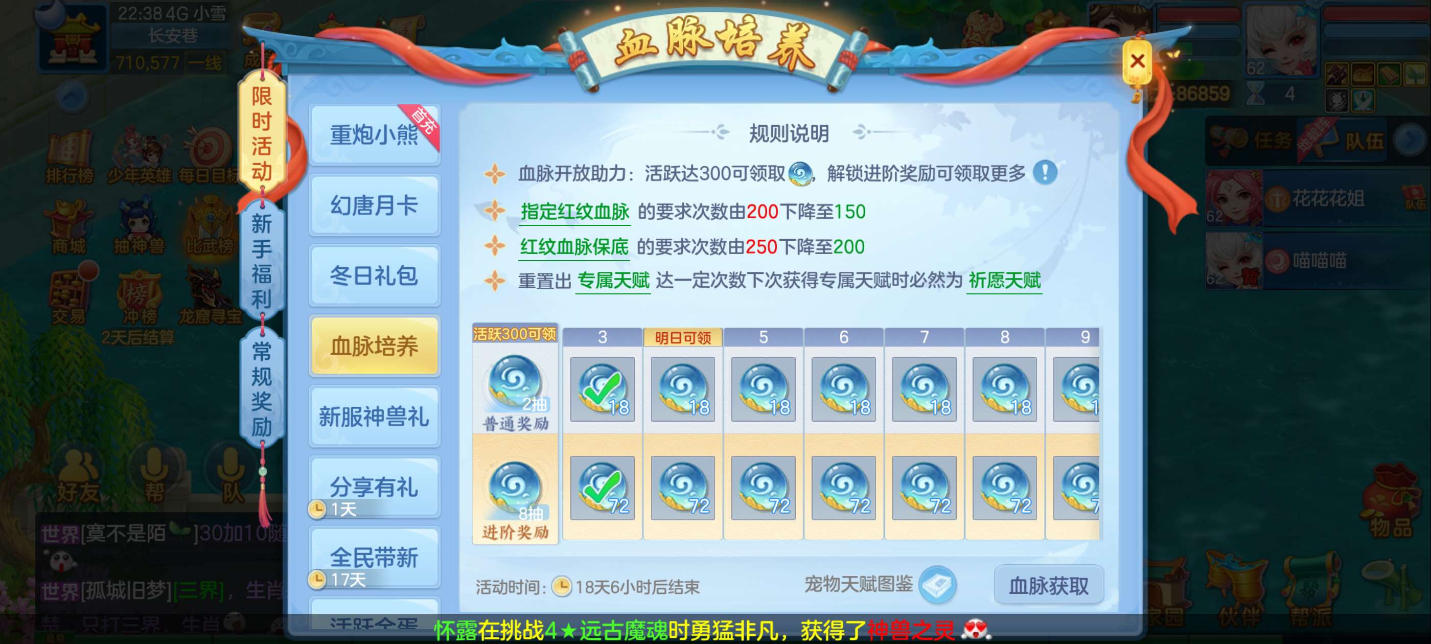 少年长歌男魔65万月卡金蛋号,还童700+,21金蛋在,4通灵,宝图,竞技积分在,宠物自选,英豪令,