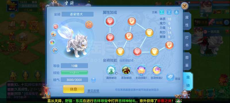 幻唐志:逍遥外传(神武4)【安卓官方】09天策神兽特殊六技能坐骑直接入手不用投了,任务打架有固定队友,找回s全家,交易要互留v
