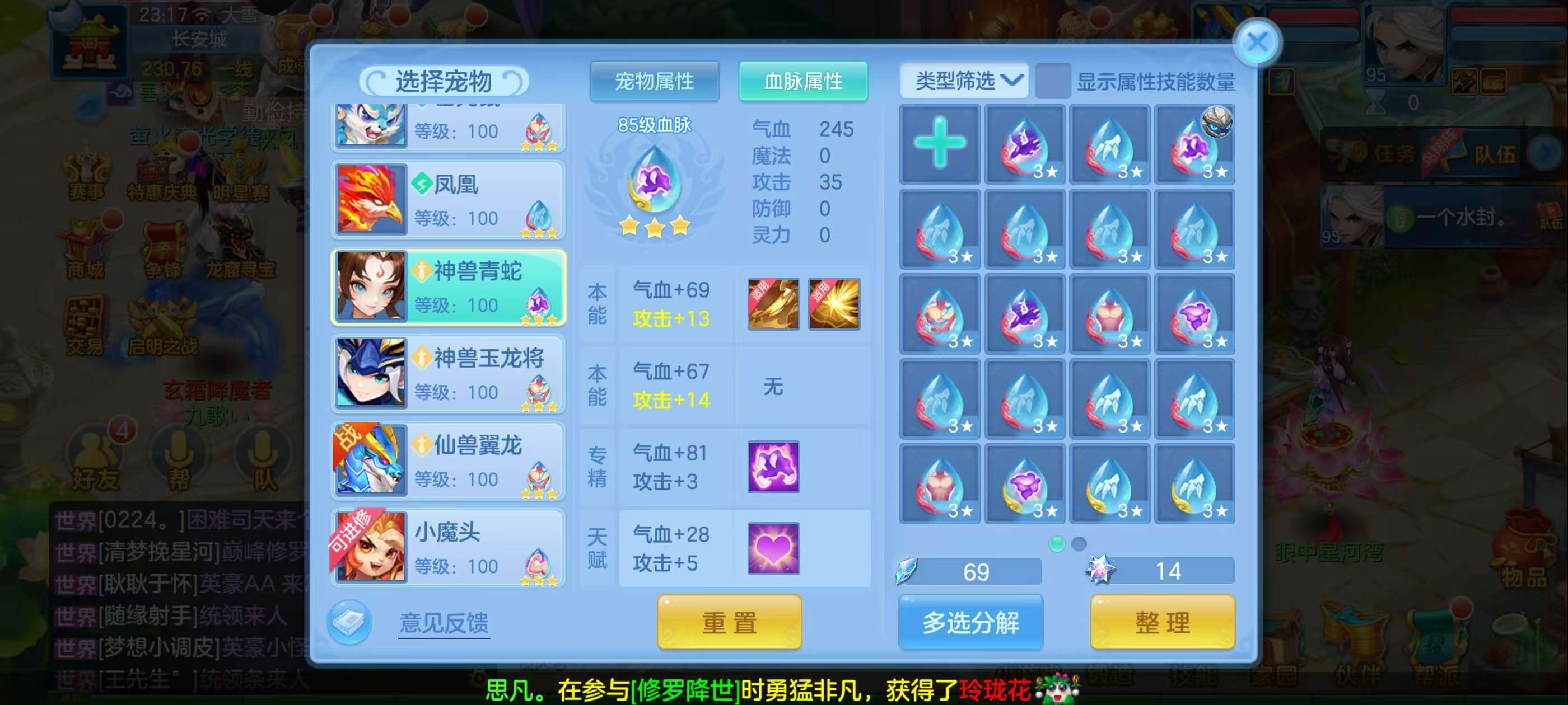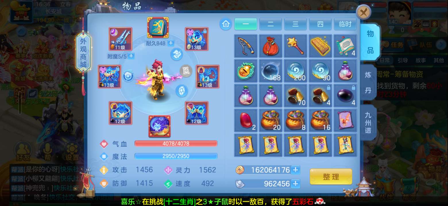 (140龙宫/男)天下无双/邮箱不送/一年换绑★无双重★6件12段,特技装,11个6多特殊5,12红13黄7专属血脉,高级坐骑2染+金拍庄园,仓库还有资源,神兽内丹碎片38,3233成就