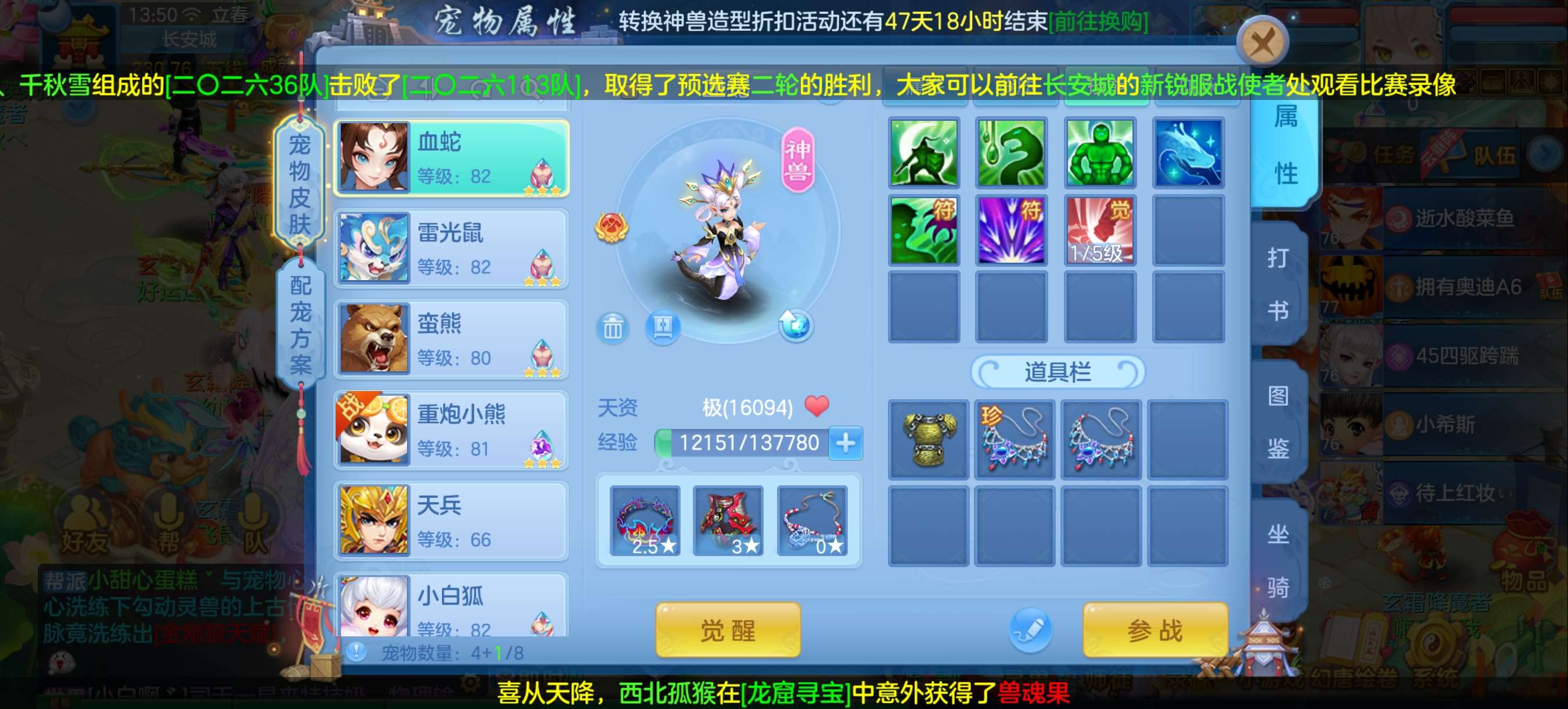 神兽内胆青蛇,暴力天宫,高级坐骑,仓库还有一个内胆,通杀一切难度