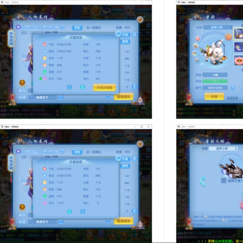 (140方寸/女)江山如画/邮箱不送/半年换绑/有双重---3件14段2件13段1件10段,特技装,满魂仙兽+2内丹神+9个6多特殊5(总6满魂),16红10黄10专属血脉,22个宝宝皮肤,高级坐骑+金拍庄园,440万银子,3249成就