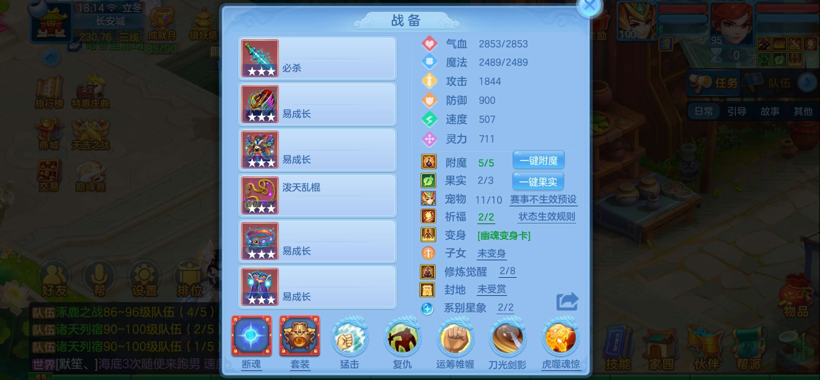 (140魔王/女)花好月圆/邮箱不送/一年换绑★无双重★3件12段1件11段2件10段,易成长,5个6技能,3珍兽,有个满魂钧邪,带800万银子,有15000积分,仓库还有很多高书,元宵,变身卡,双倍充值也还有,2626成就