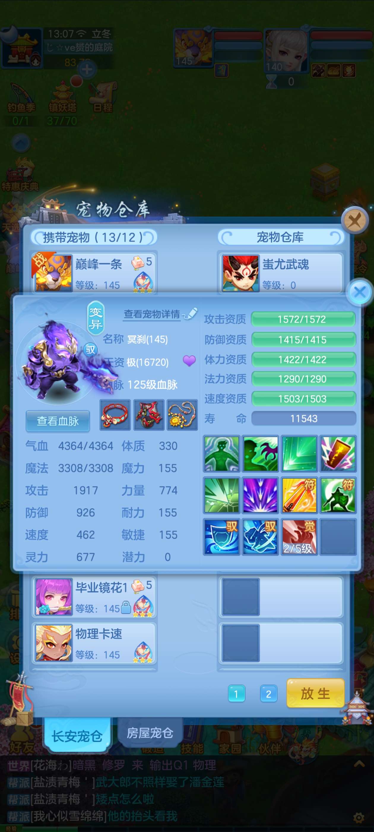 109普陀16个满兽魂,6个专属血脉。13满段,1强化玉龙,1法蛇。上手就能玩2980邮箱,无双重。