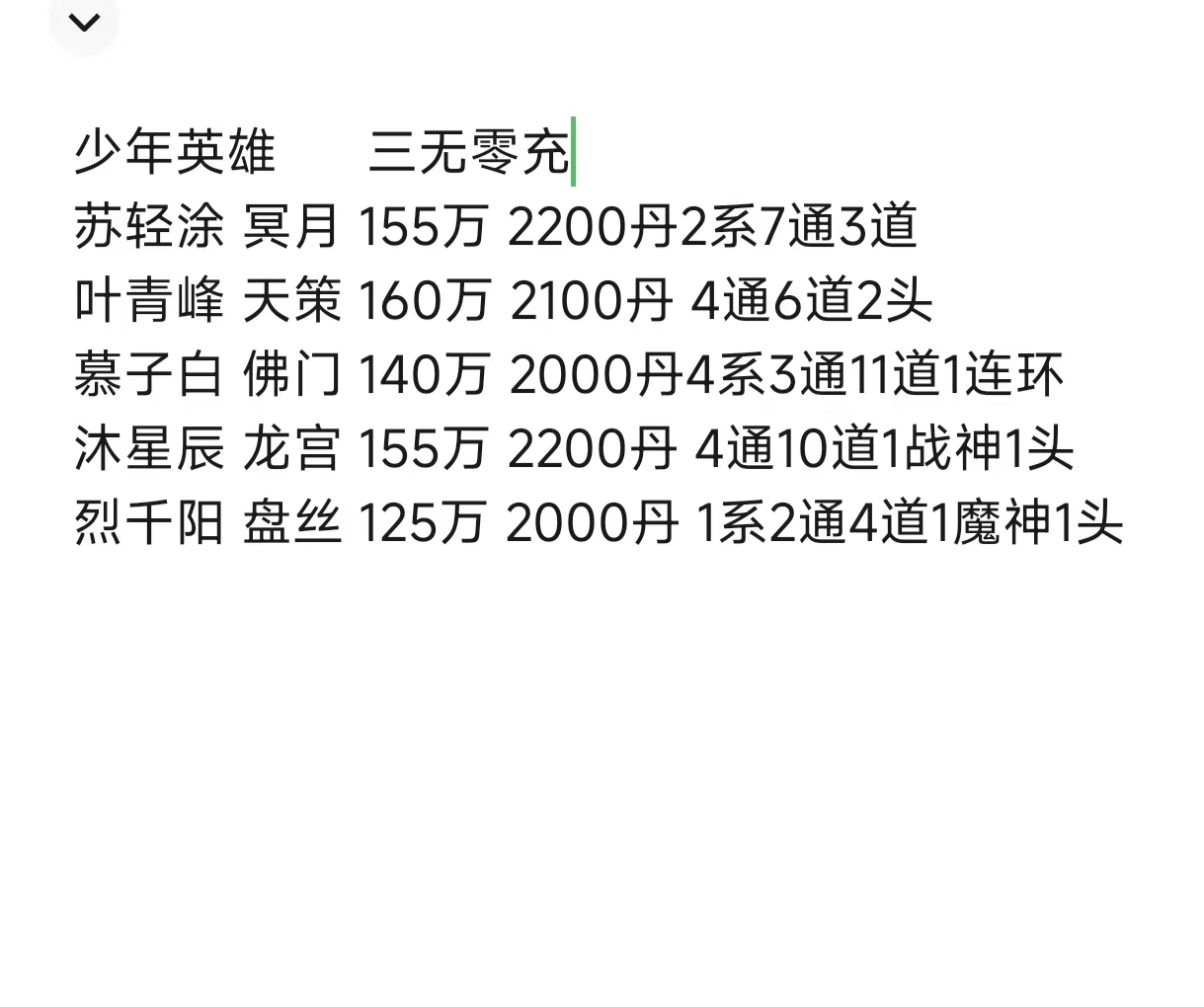 少年英雄。63男冥月。三无零充资源号。165万银子