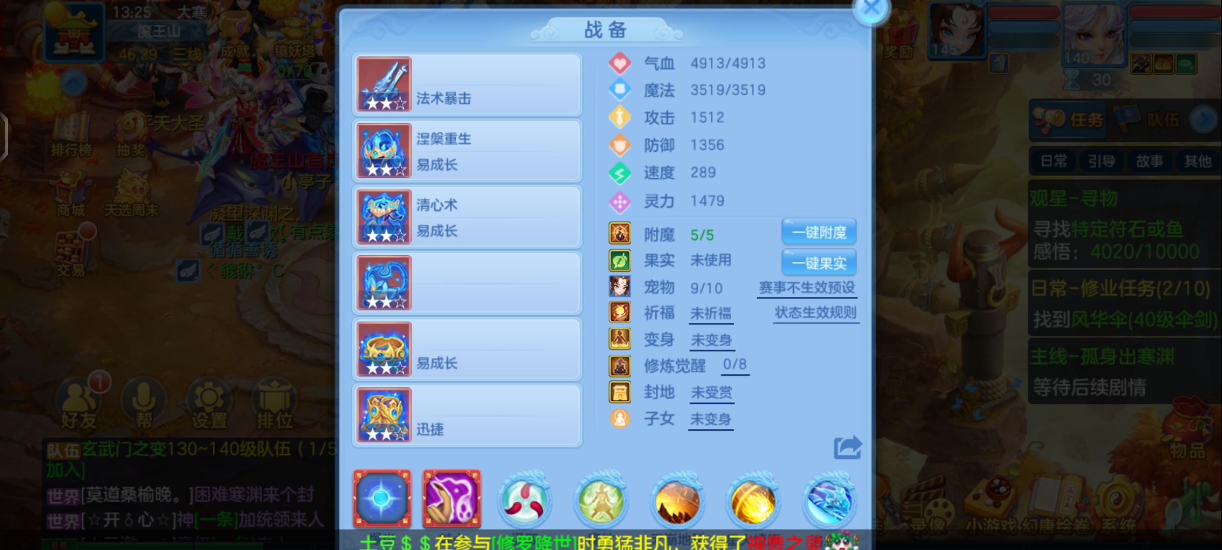 (140龙宫/男)天下无双/邮箱不送/一年换绑★无双重★6件12段,特技装,11个6多特殊5,12红13黄7专属血脉,高级坐骑2染+金拍庄园,仓库还有资源,神兽内丹碎片38,3233成就