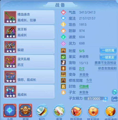 天下95神器狮子,1内丹仙1强化,4内丹神4强化(3蛇1玉龙2蛇皮)