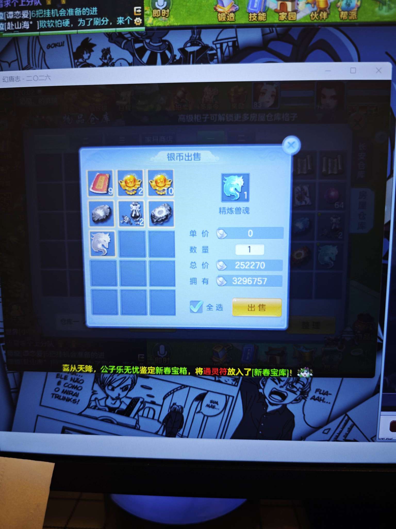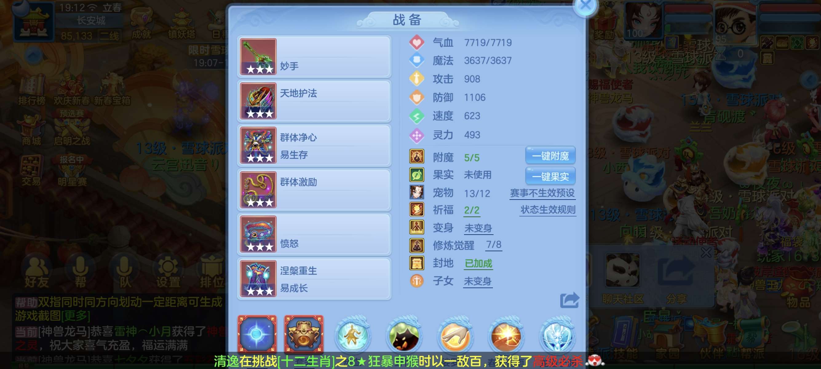 (140龙宫/男)天下无双/邮箱不送/一年换绑★无双重★6件12段,特技装,11个6多特殊5,12红13黄7专属血脉,高级坐骑2染+金拍庄园,仓库还有资源,神兽内丹碎片38,3233成就