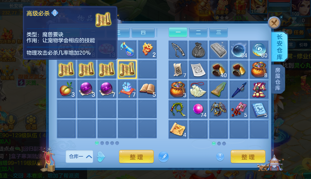 飞升136魔王 ,可关联,基本宠物都有 仓库一堆可用东西,有120多万银,快换神兽了,有保险