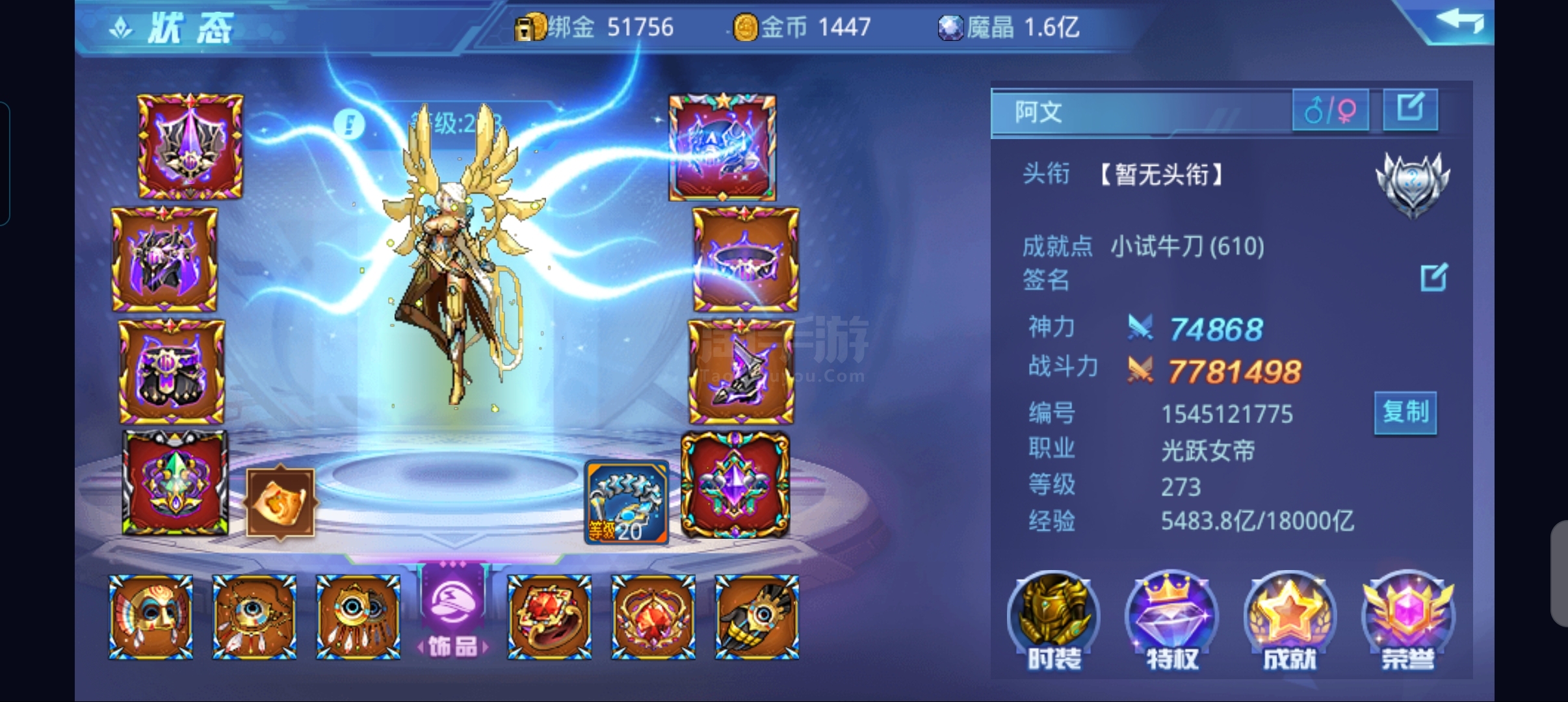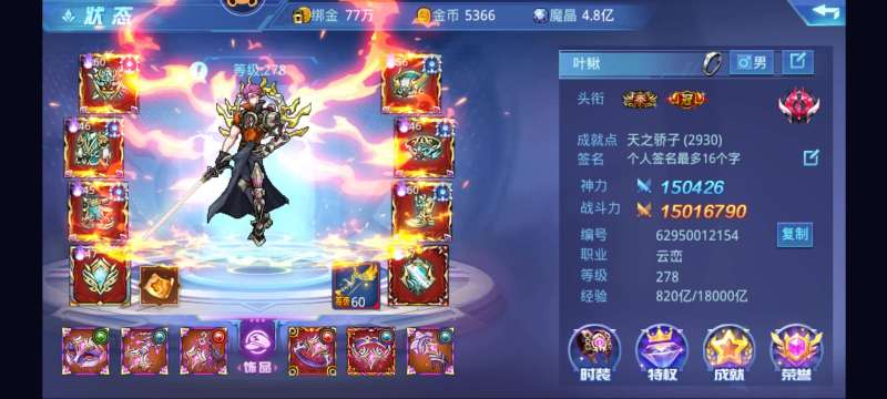 时空猎人【苹果官方】高力雷神全角色1610万战力战榜10多名,VIP39级,新角色和红武都有,5个满级光环,6个满级神话
