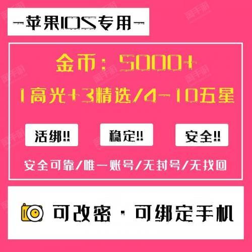 【可绑定手机/可改密】5000金币1高光3精选