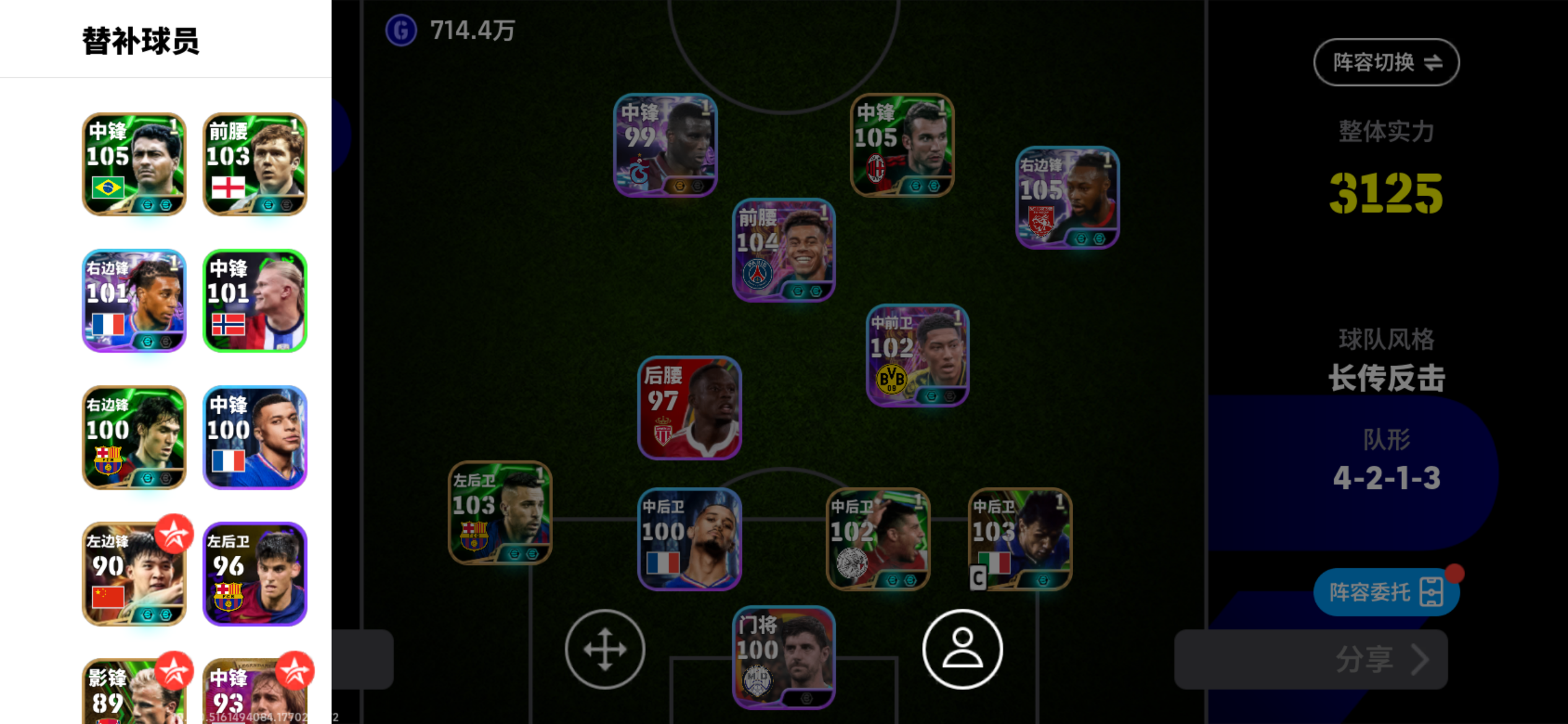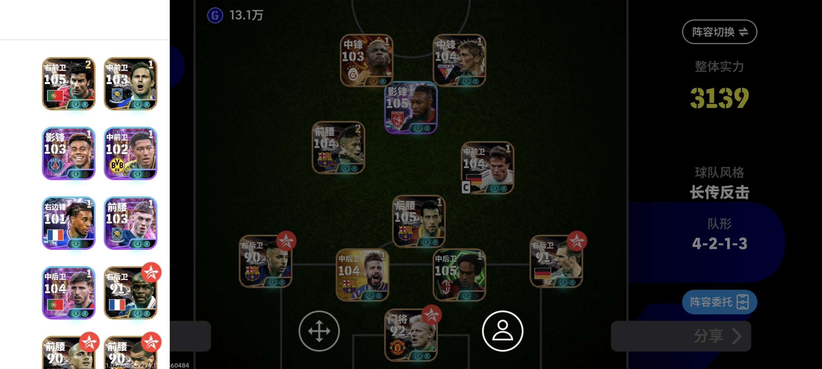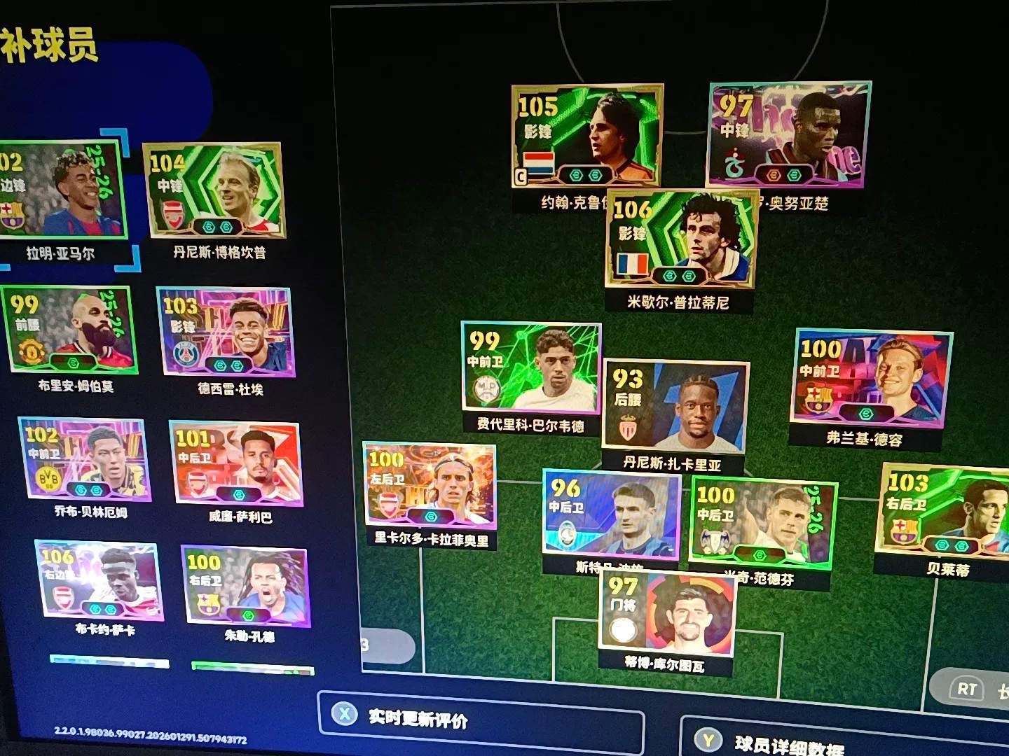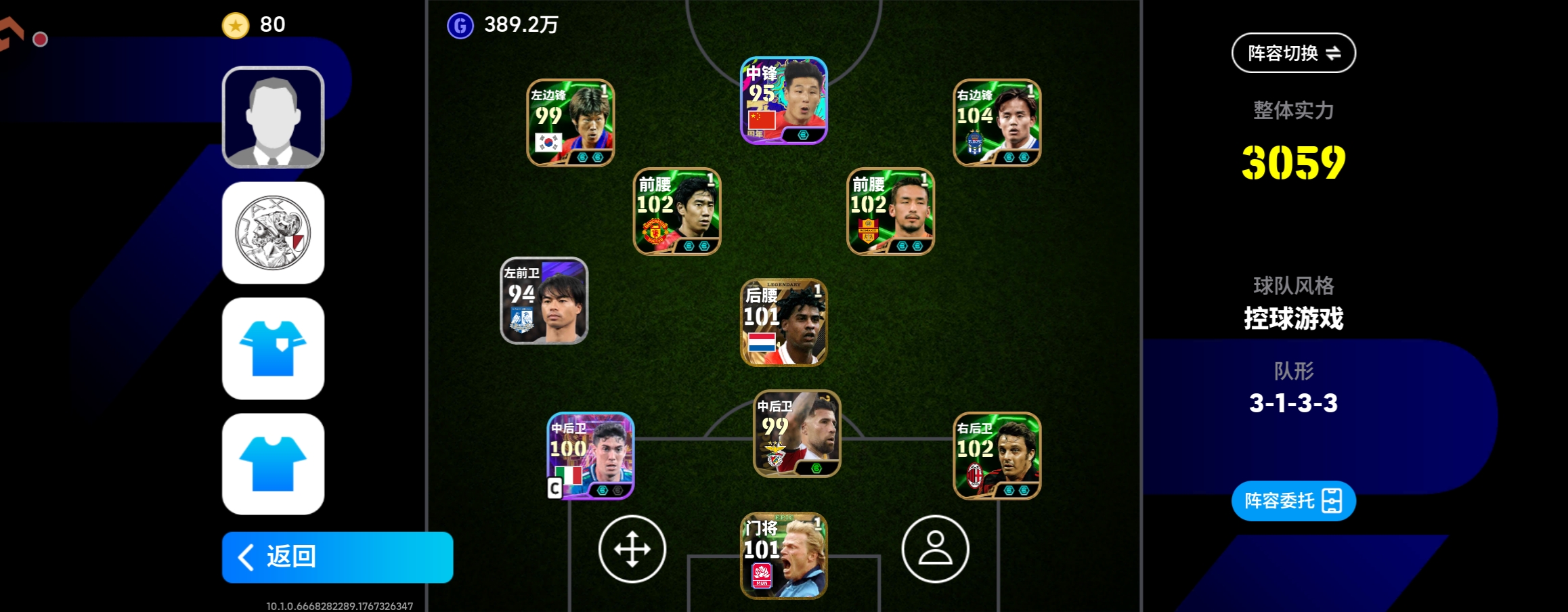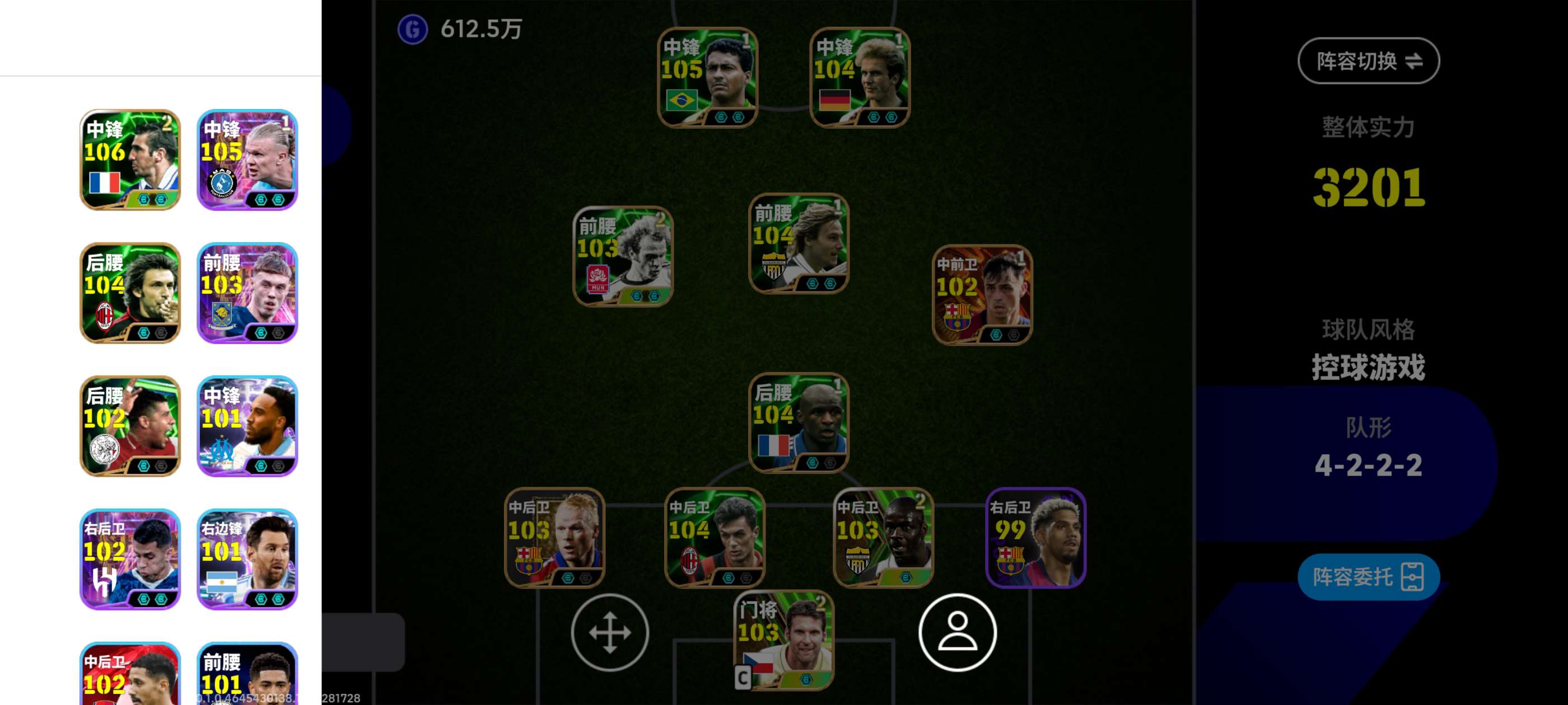 实况足球Ol端,克鲁伊夫普拉蒂尼黑科勒实力好段位高带7千金币