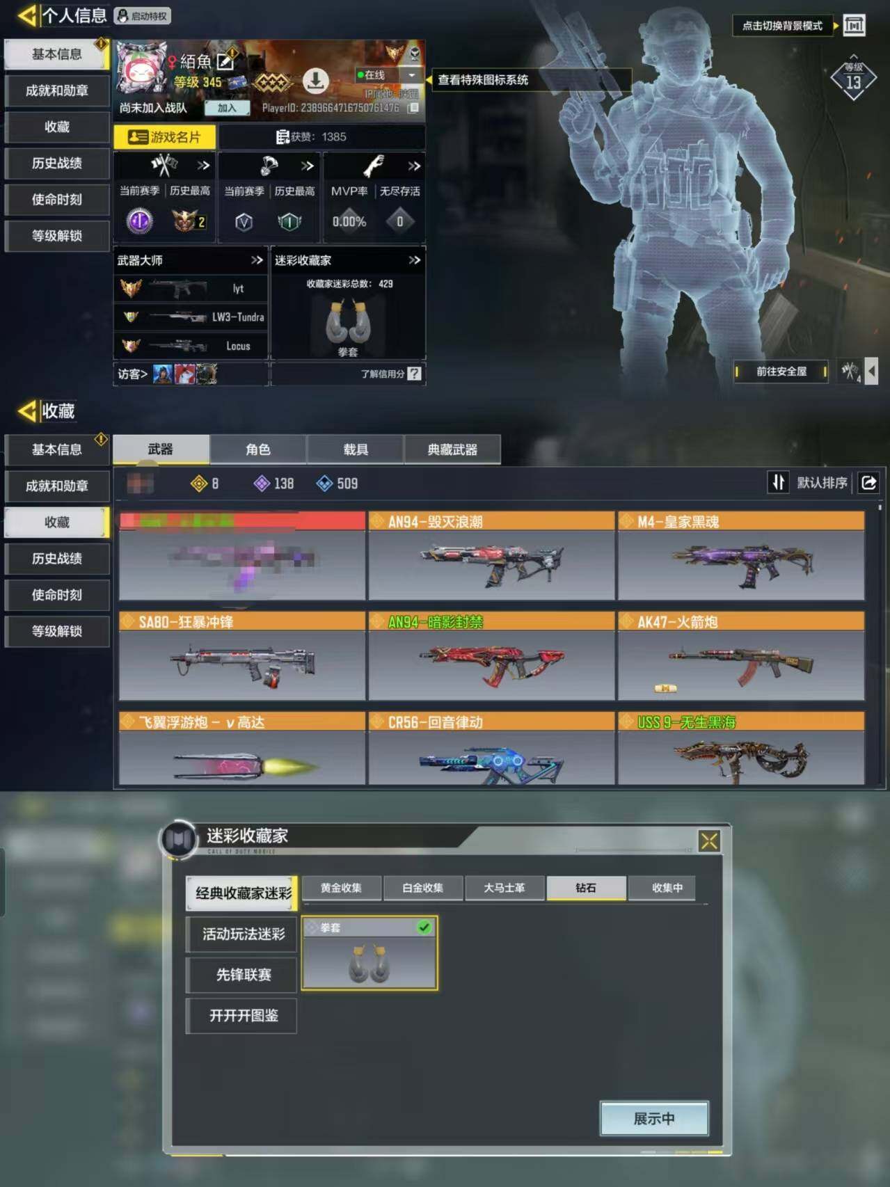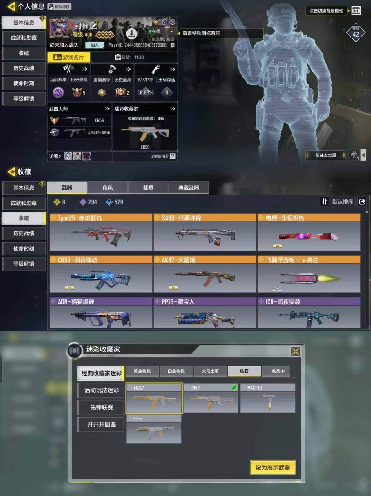 使命召唤手游【安卓QQ】n57,400级,6传说294史诗,火箭炮,飞翼浮游炮v高达,回音律动钻皮,电