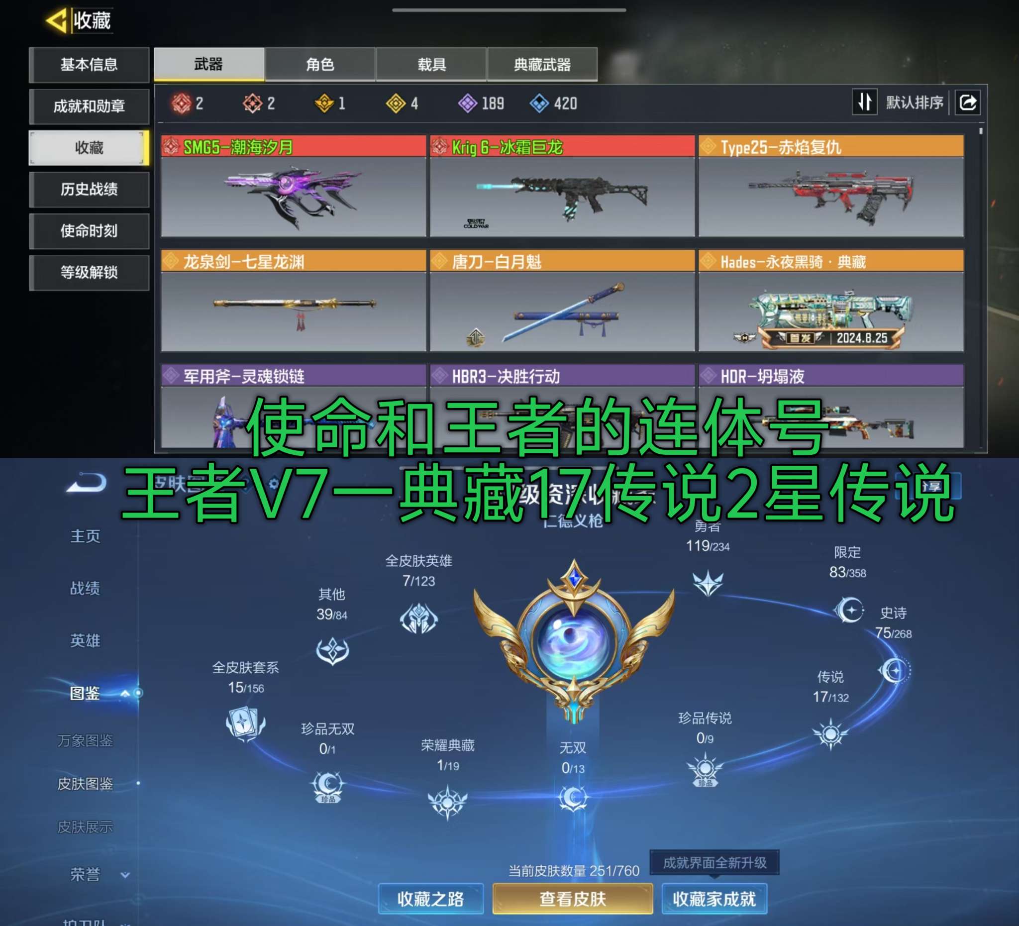 使命和王者的连体号 两满级神话 冰龙 潮海汐月 唐刀 王者V7 一典藏 17传说 2星传说