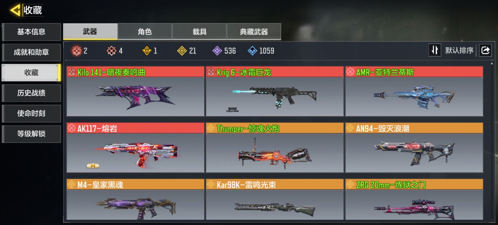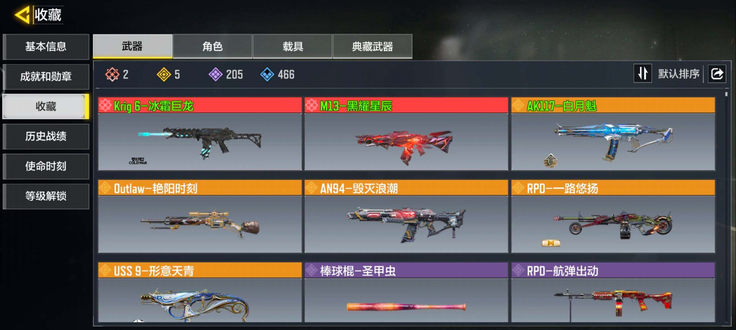 无二次2红5金,M13-黑耀星辰,Krig 6-冰霜巨龙,唐刀-白月魁