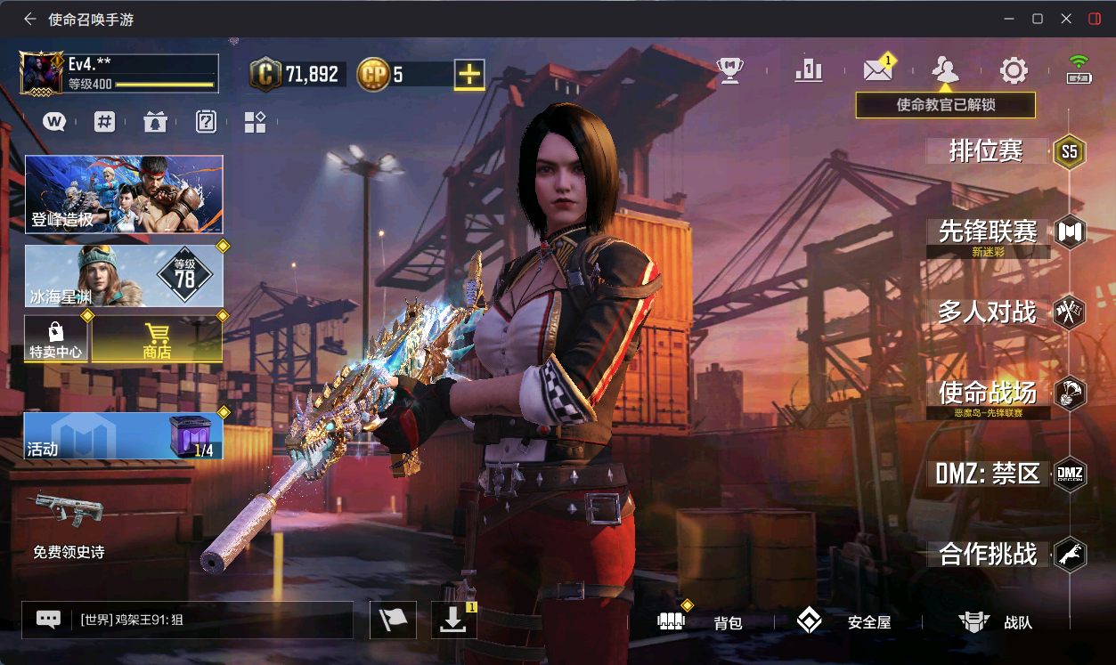 9神话4满级2典藏12传说-动能+毛瑟-1红角色安卓QQ,段位:白银