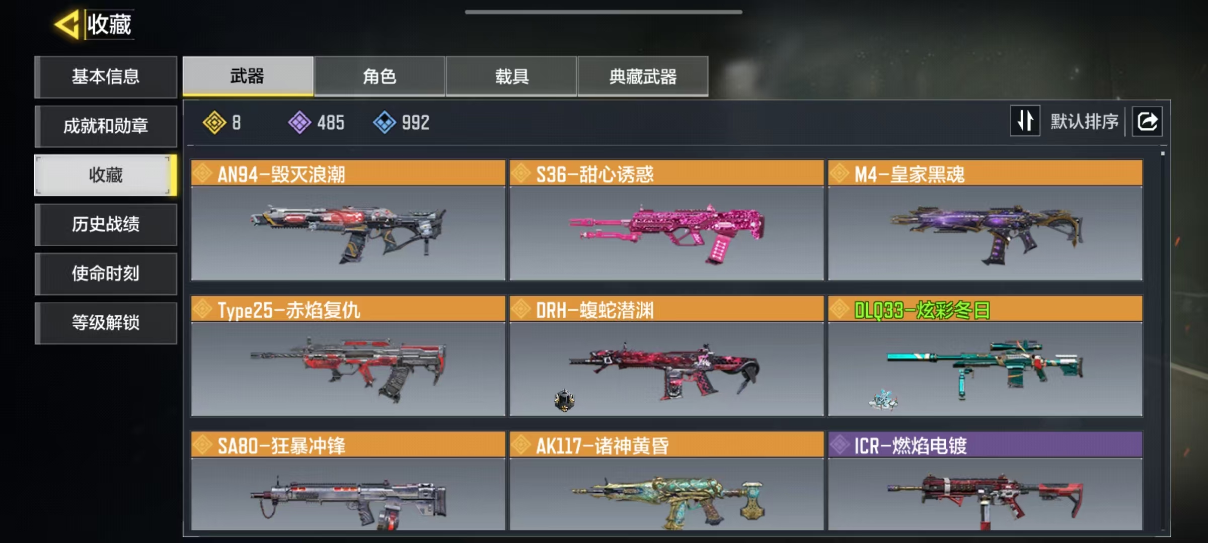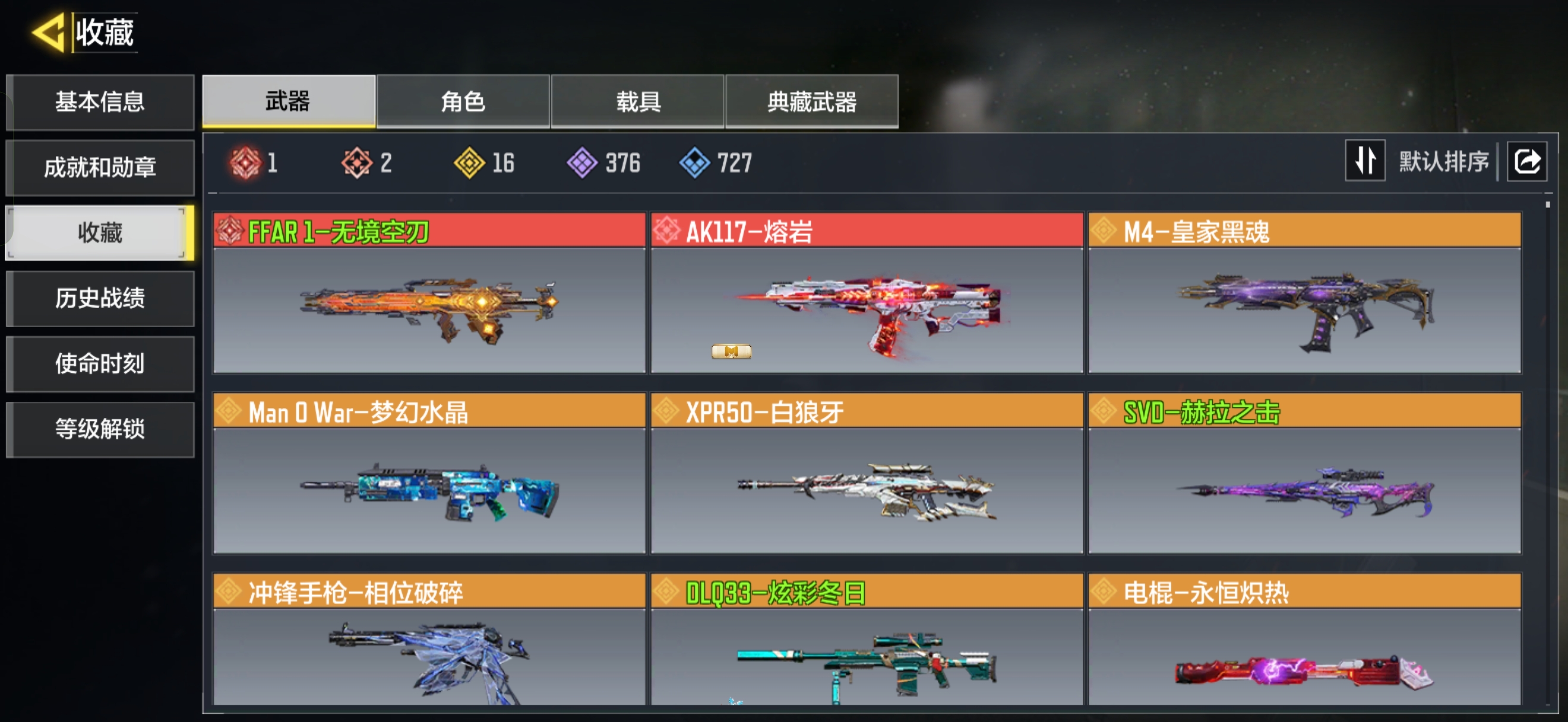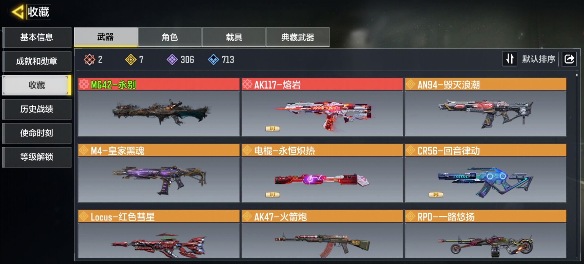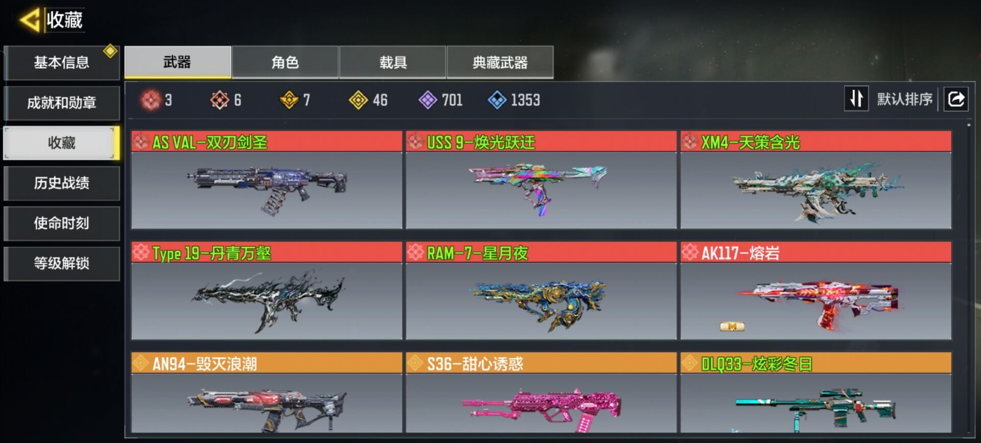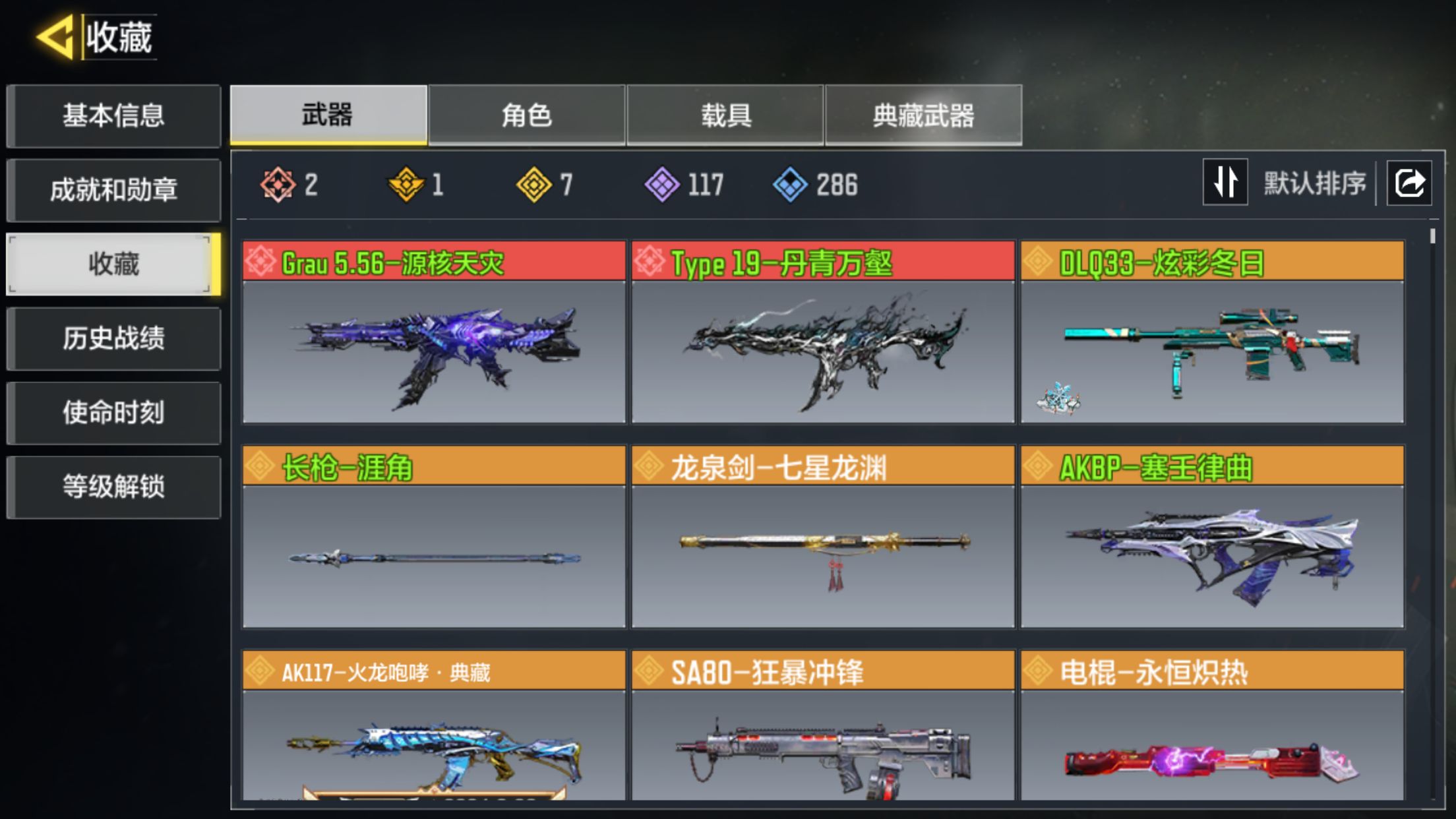一红五橙 AK117终墟 唐刀 圣诞狙 ICR紫藤曼华 荷光者 宵羽