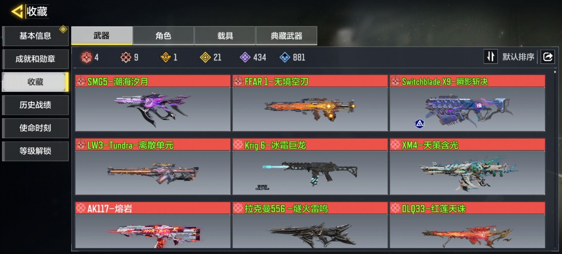 满级墨龙大宝剑,满级t3,四把高达联动主武器,一个角色,一辆传说载具,传说降落伞