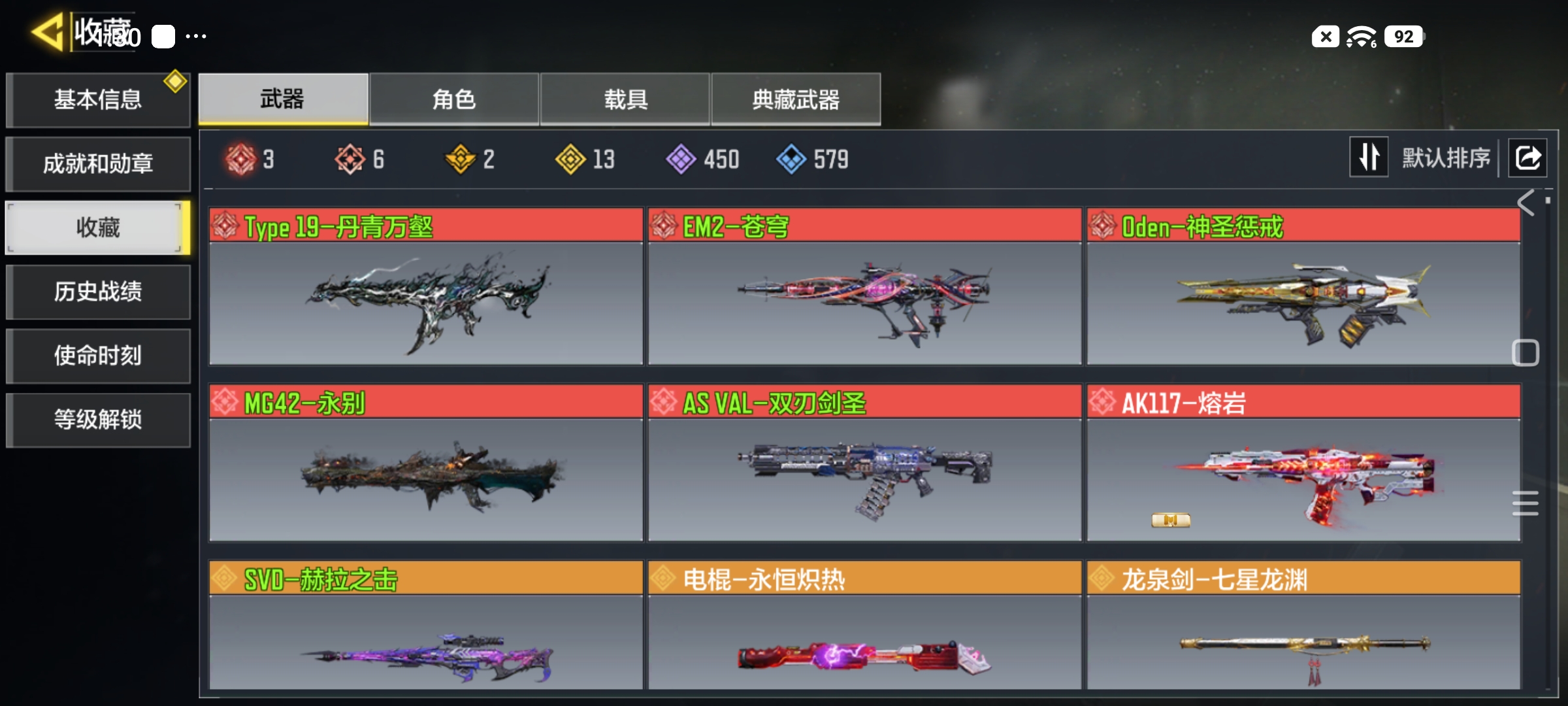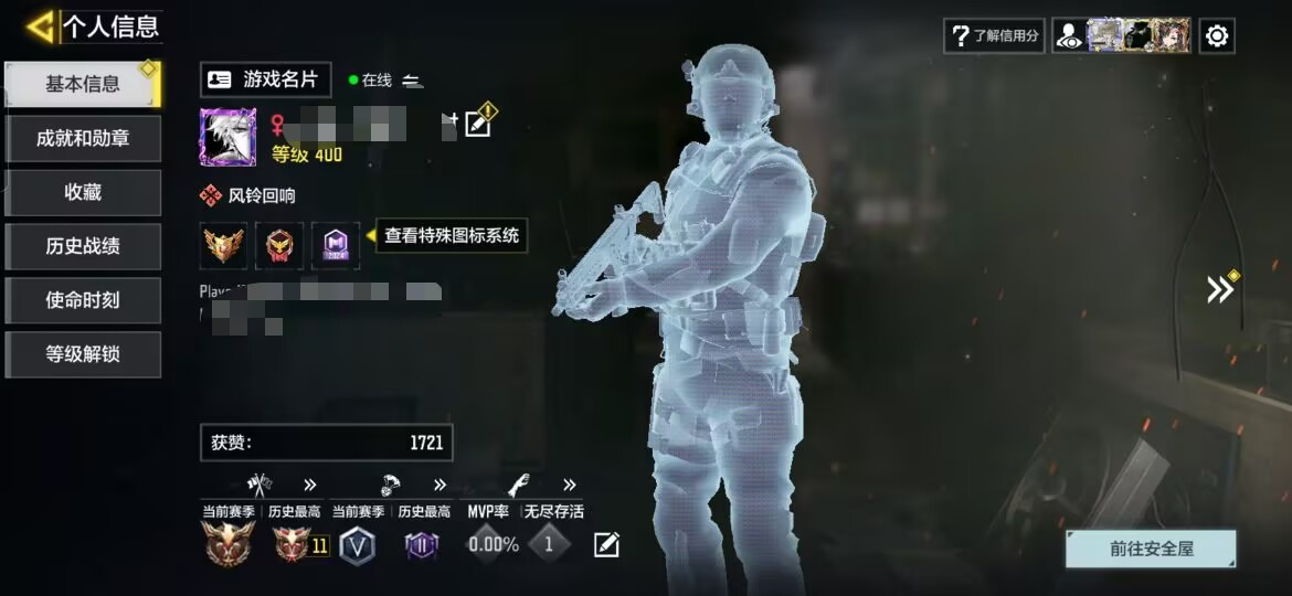 实名状态:可改实名,段位:铂金,神话武器数量:2,传说武器数量:7