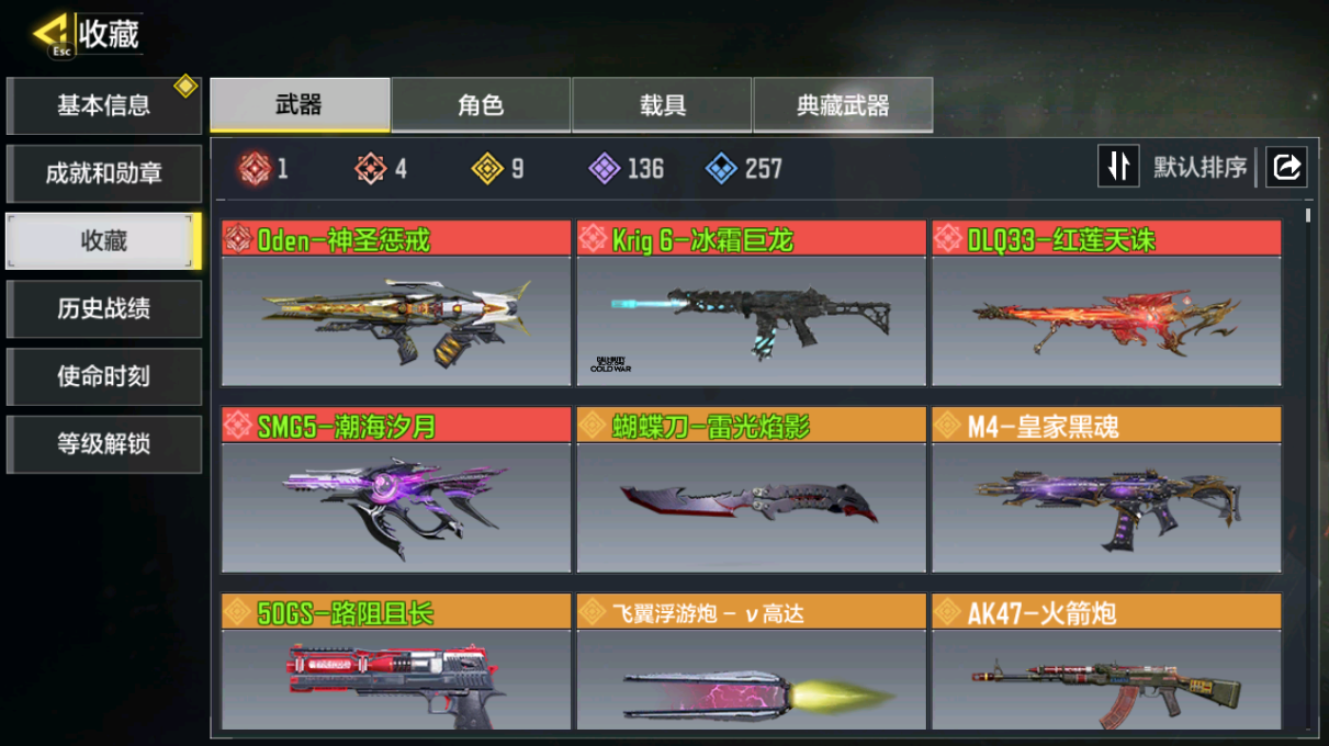 实名状态:可改实名,段位:钻石,神话武器数量:5,传说武器数量:3