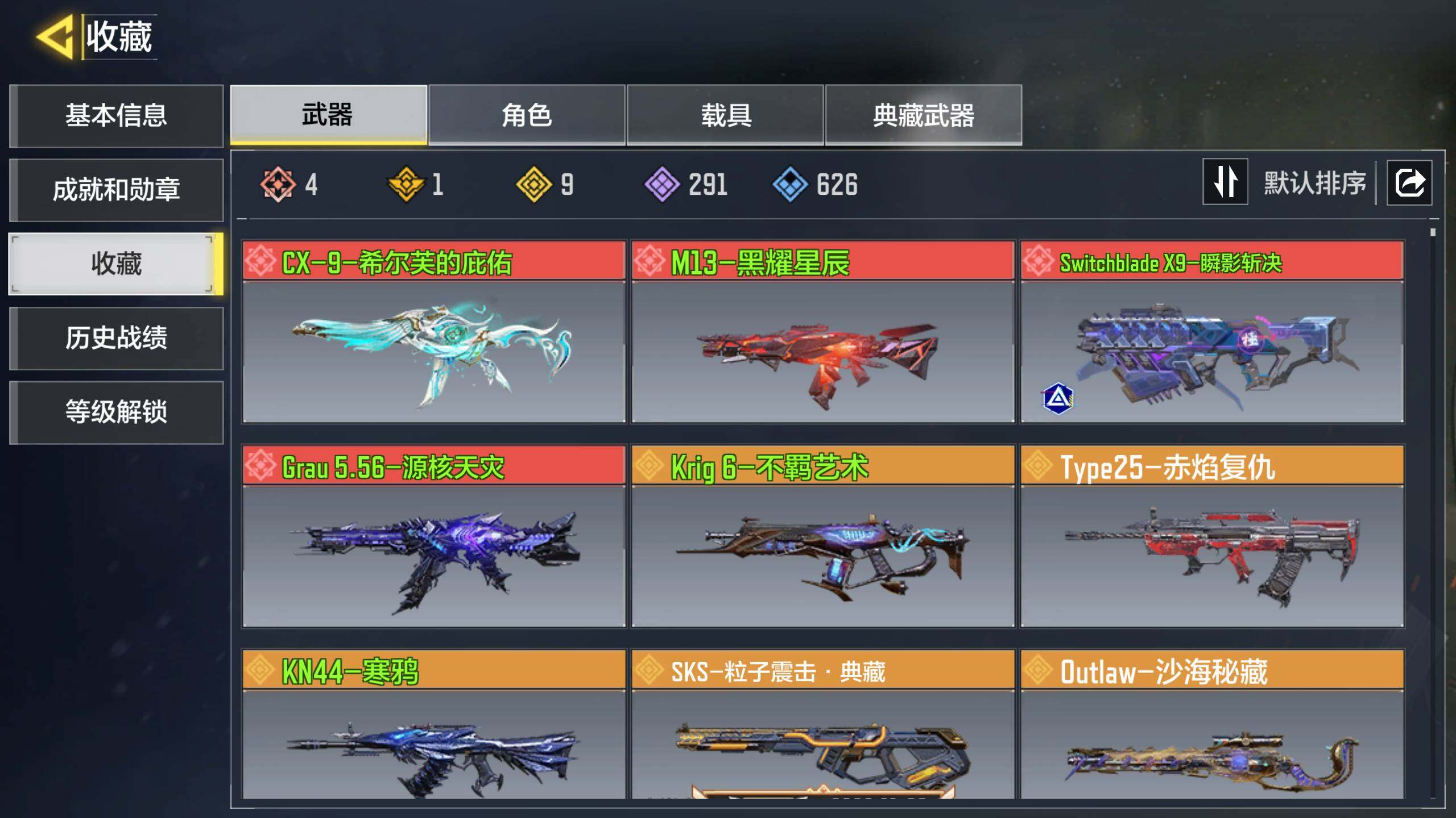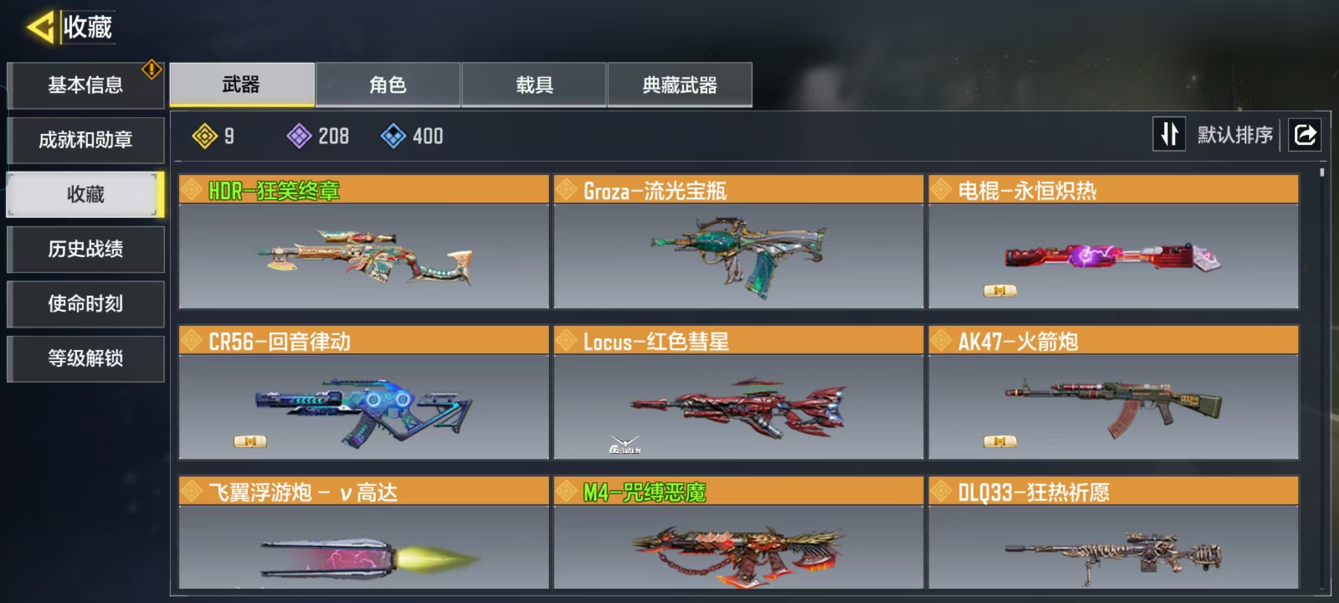 5红25金2典藏4角色 安卓Q-等级400-史诗枪械558