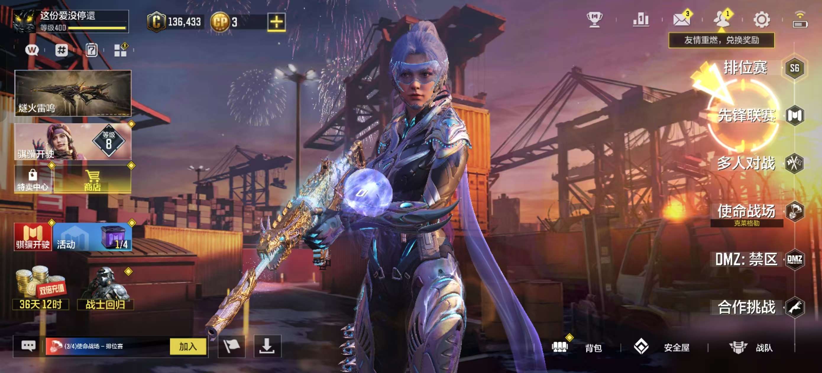 【特价出售】【3神话 7传说】安卓Q-等级400-史诗枪械245 【3神话】