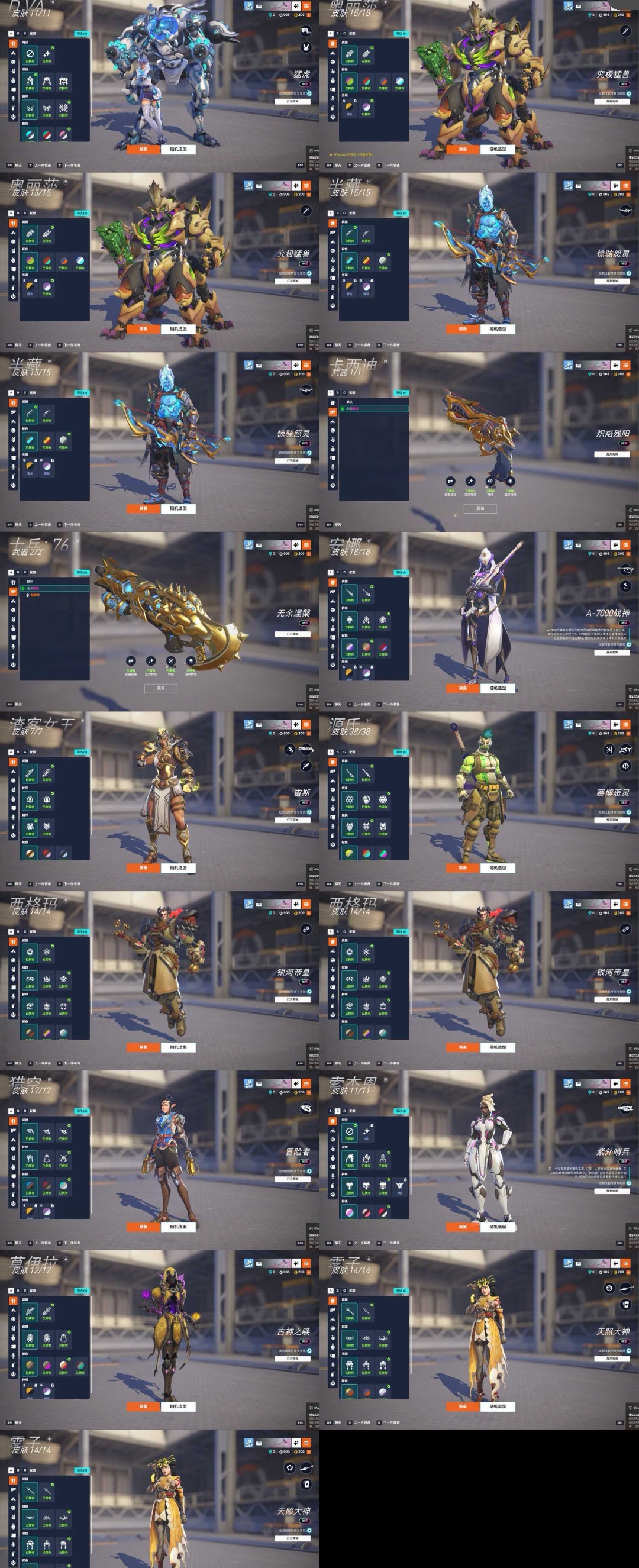多皮肤,7200竞技点,7金武器加2紫武器。除送的神话皮,外加和尚,死神的神话皮麦克雷,安娜神话武