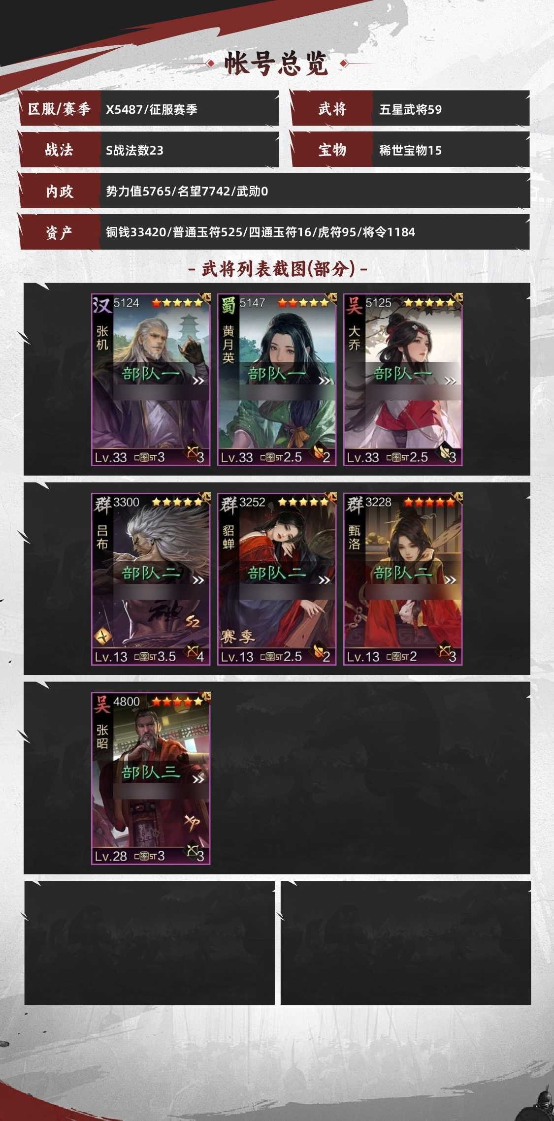 x5410决胜中原。没时间玩弃坑,自用欧皇小号,详细看图。诚心出有终身包赔。vivo端,快合区了