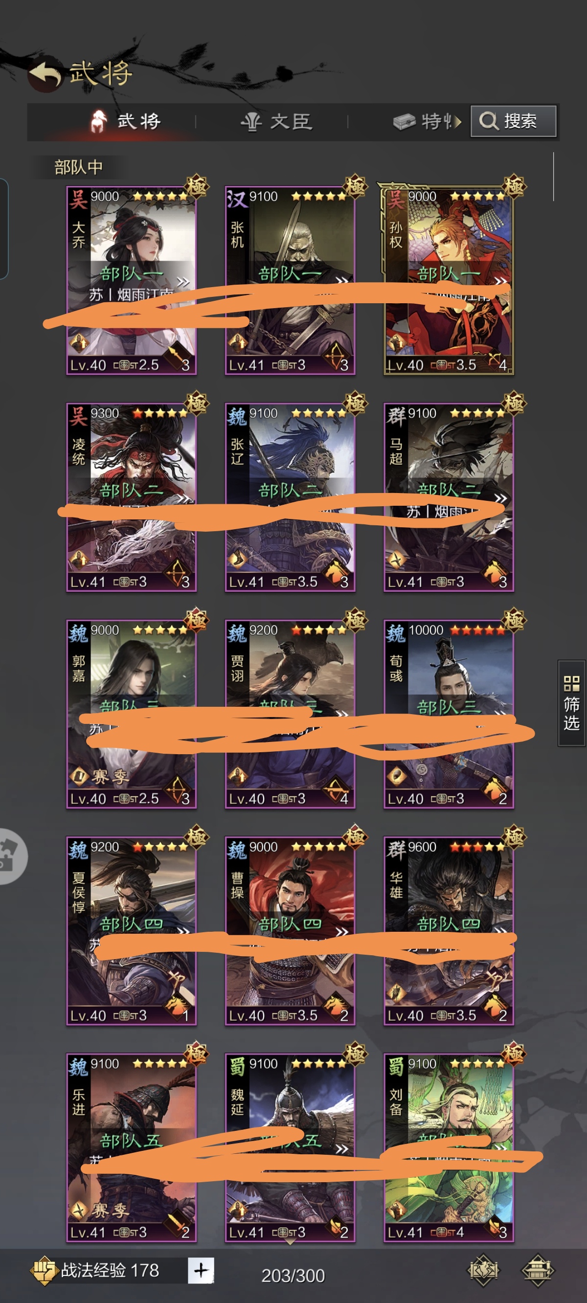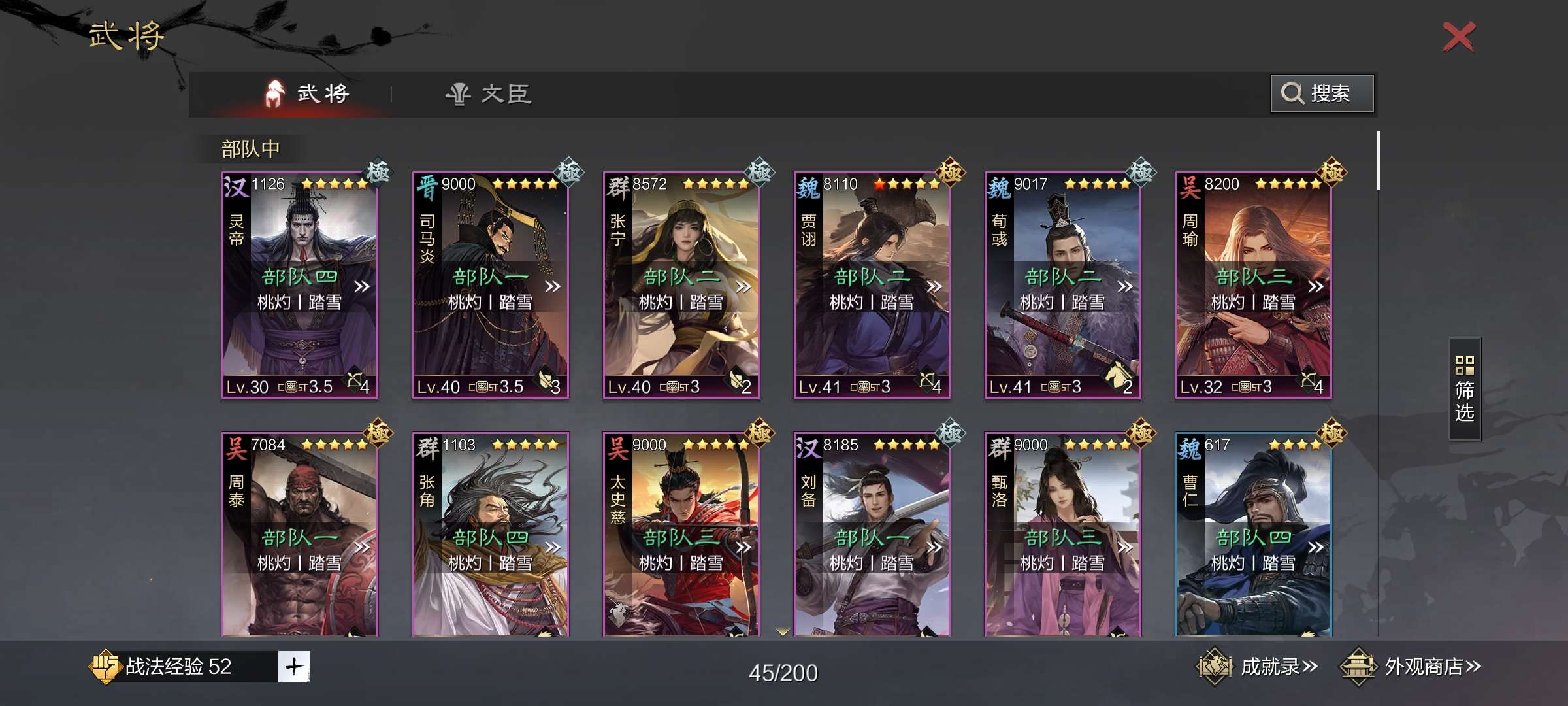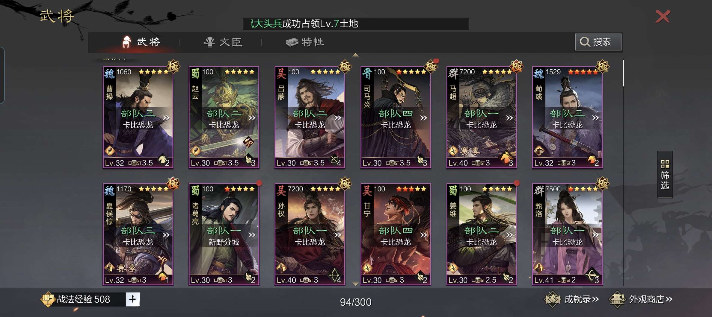 官服试师,满红sp姜维一红张机程昱王异孙权,二赛季限定武将都有,第二张图是附带的小号在同一个